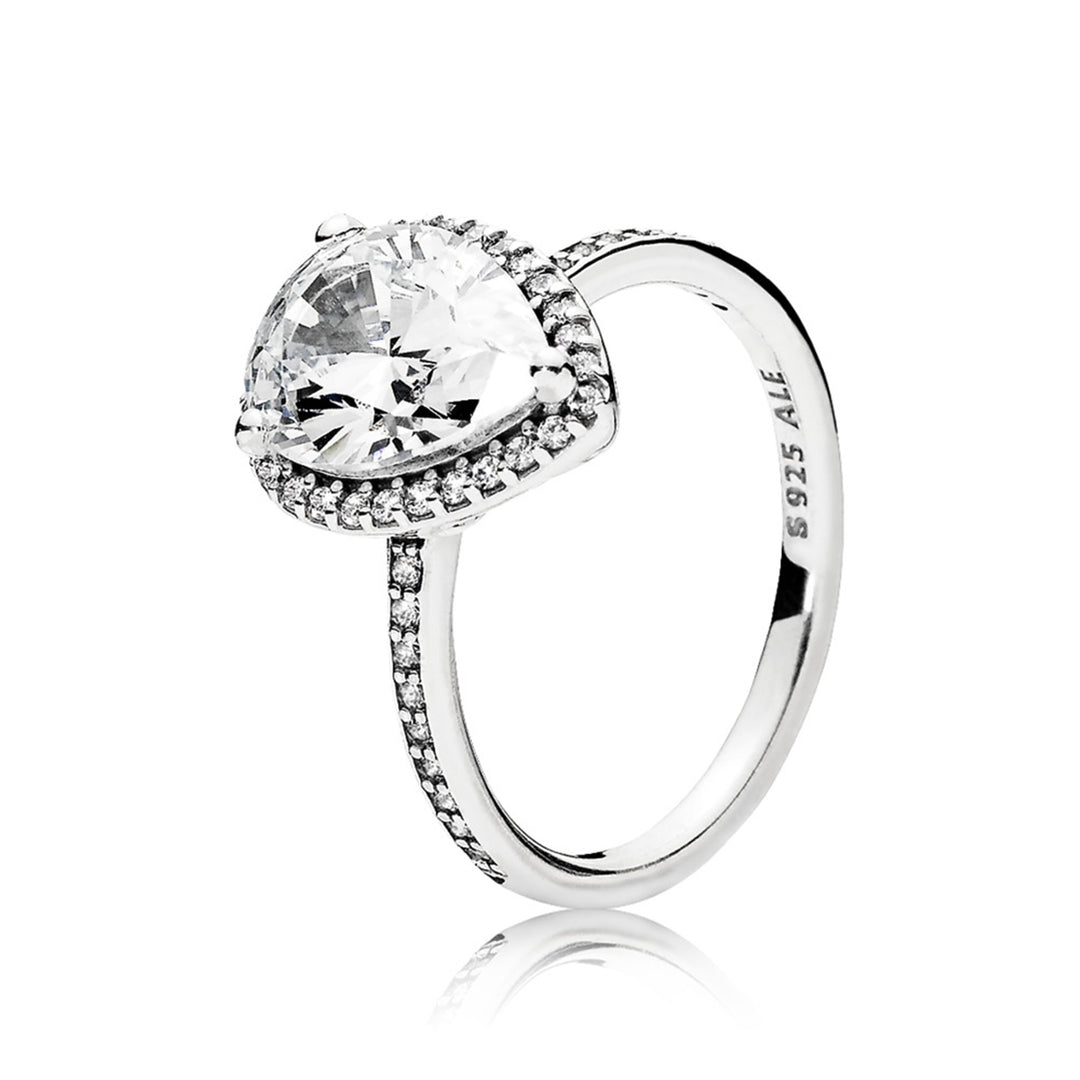 Sparkling Teardrop Halo Ring
