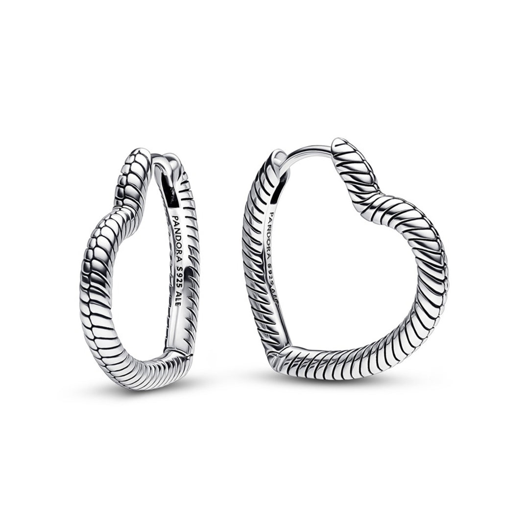 Heart snake chain pattern sterling silver hoops