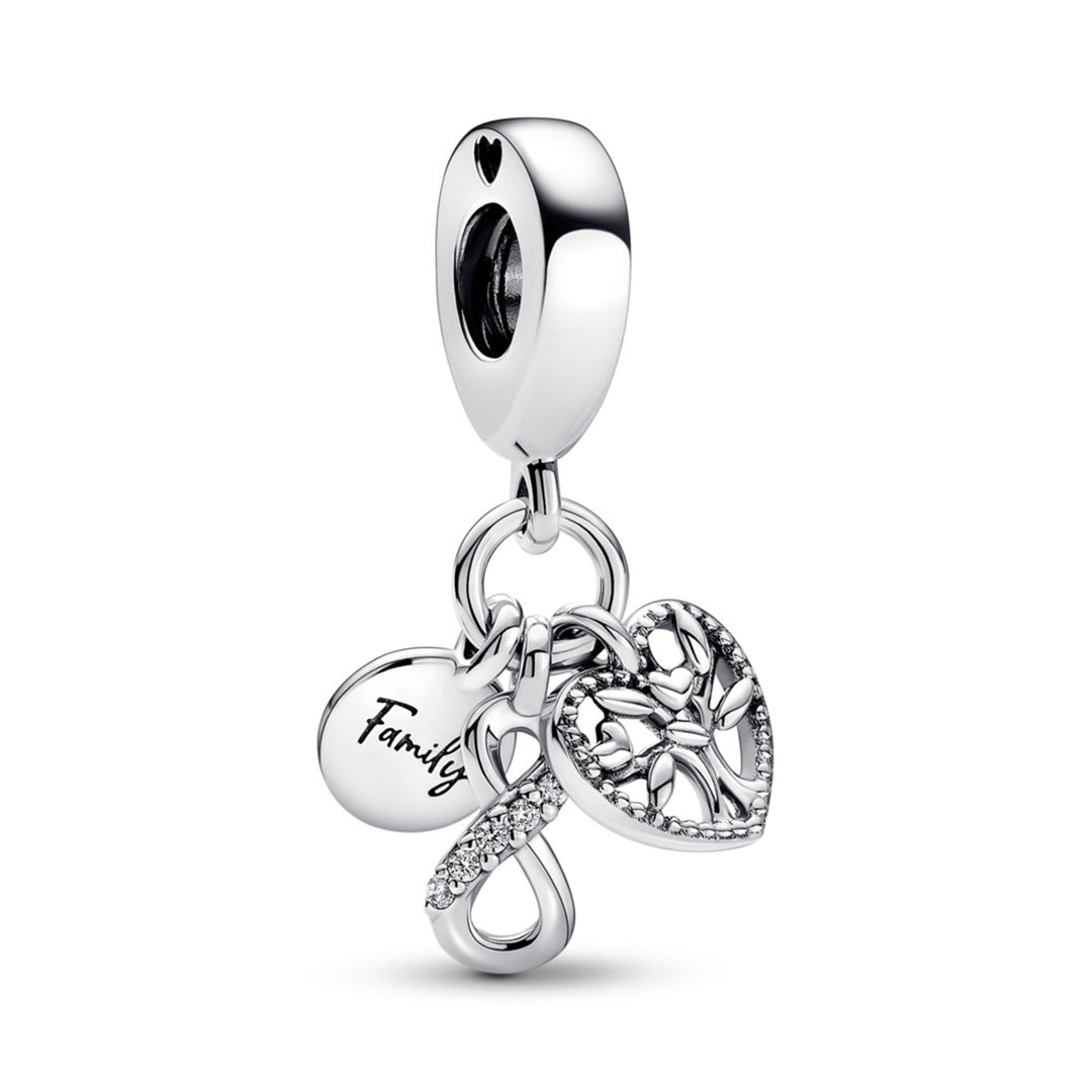 Infinity, disc and heart sterling silver dangle
