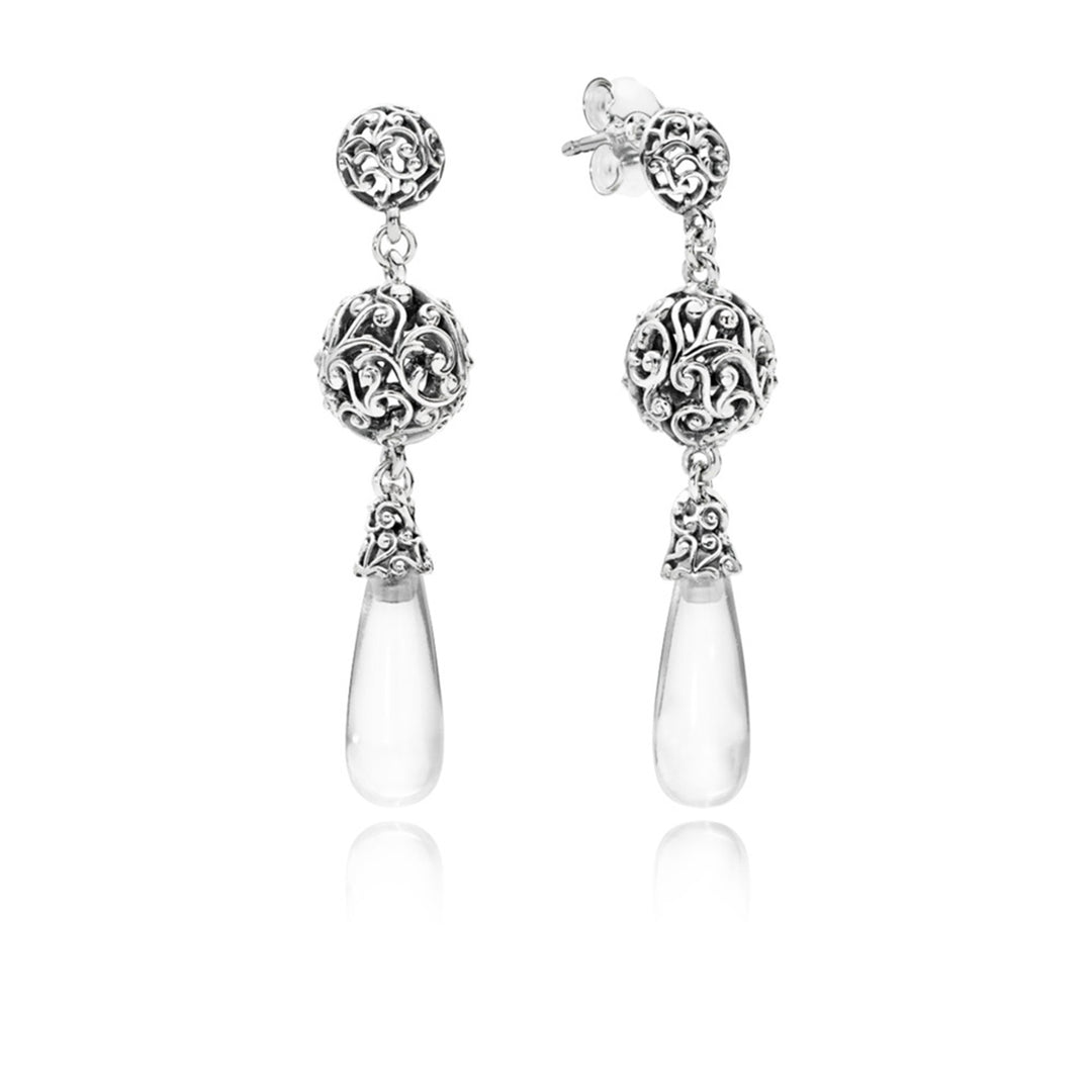 Ice cube earrings in sterling silver with 10 bar-set baguette-cut and 48 claw-set clear CZ