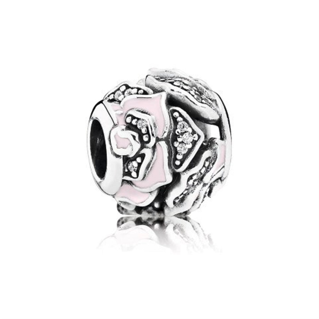 delicate rose, pink enamel & clear cz