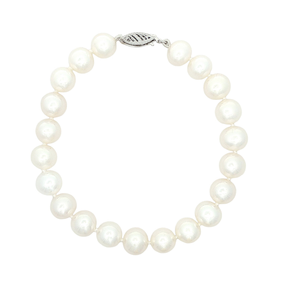 14K White Gold Fresh Water Pearl 8" Bracelet