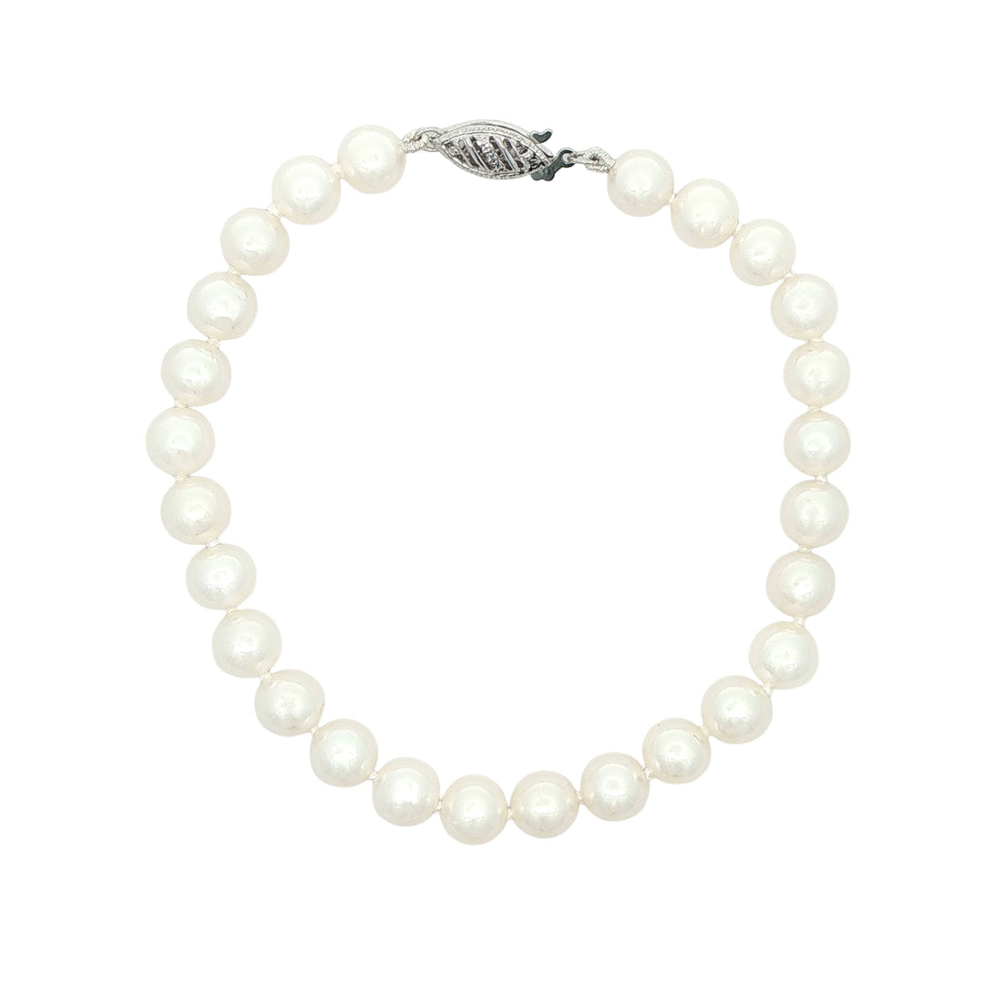 14K White Gold 6-6.5mm Freshwater Pearl 7.5" Bracelet