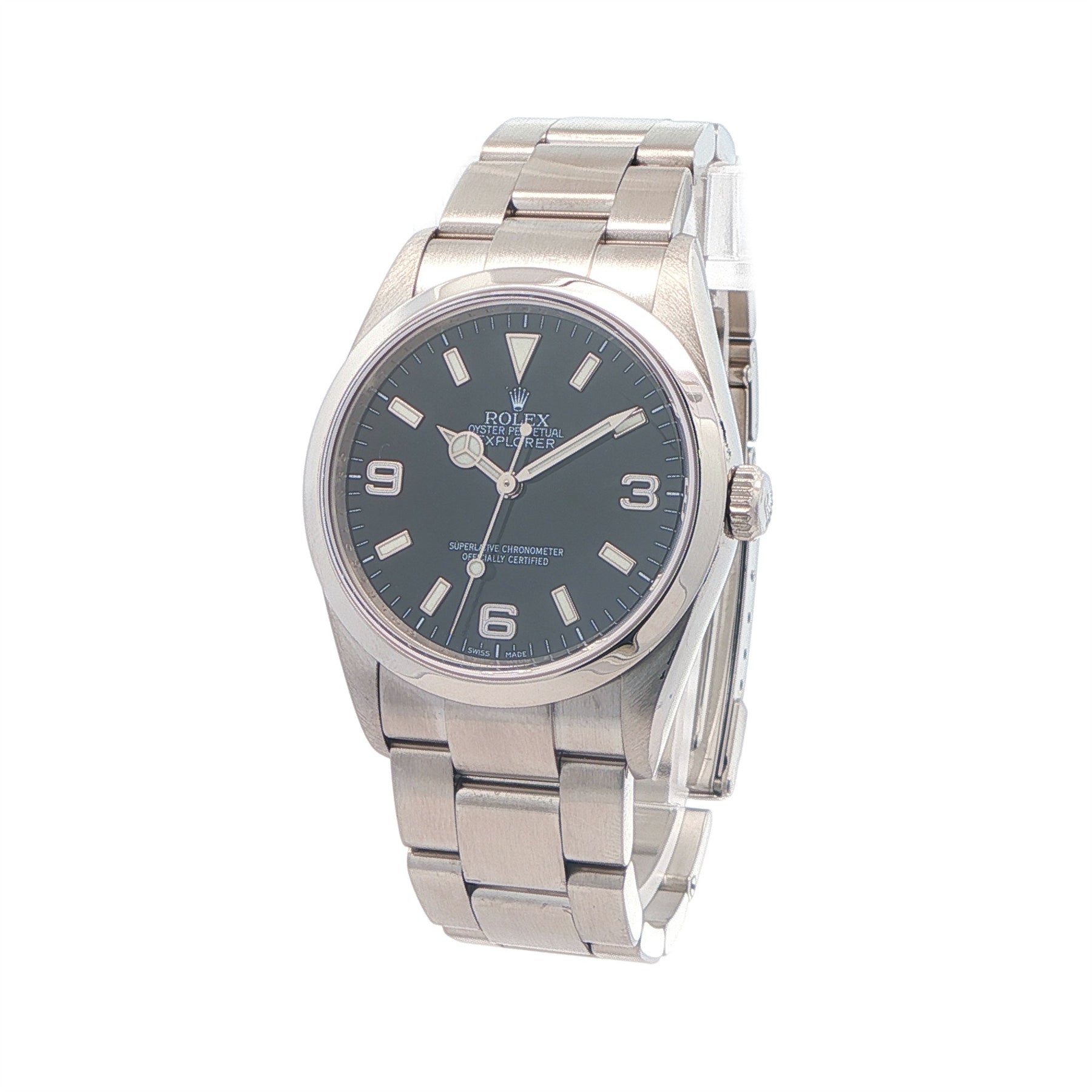 Compact, confident, and quietly legendary — this 36mm Rolex Explorer 114270 proves that adventure doesn’t need to shout to be heard. The last of the classic-sized Explorers before Rolex upsized the line, this 2010 model bridges vintage charm with modern reliability. Its glossy black dial with white gold markers captures that perfect balance between rugged and refined — the kind of watch that looks equally at home on a mountain trail or under a shirt cuff at dinner. Powered by the sturdy Calibre 3130 automatic movement, it’s a no-date purist’s dream: simple, precise, and unapologetically functional. The brushed Oyster bracelet keeps things sleek and understated, while the 36mm case wears like a glove — the Goldilocks size that enthusiasts are now rediscovering in droves. In short, this Explorer doesn’t just tell time — it tells stories.