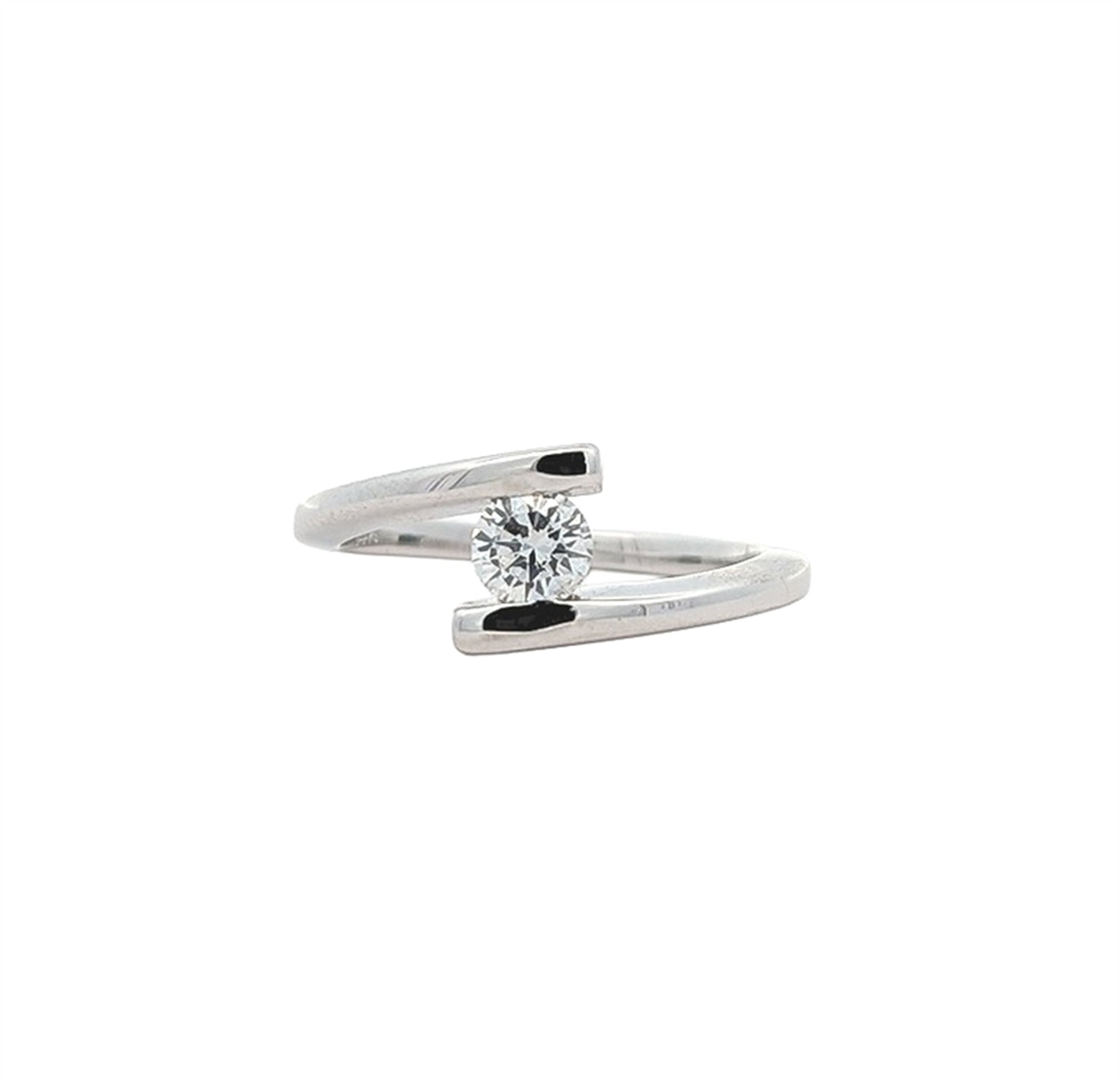 One tension set round brilliant cut diamond solitaire engagement ring with a high polish finish. Measuring 4.10-4.05 X 2.45mm. Approximate weight 0.25ct.