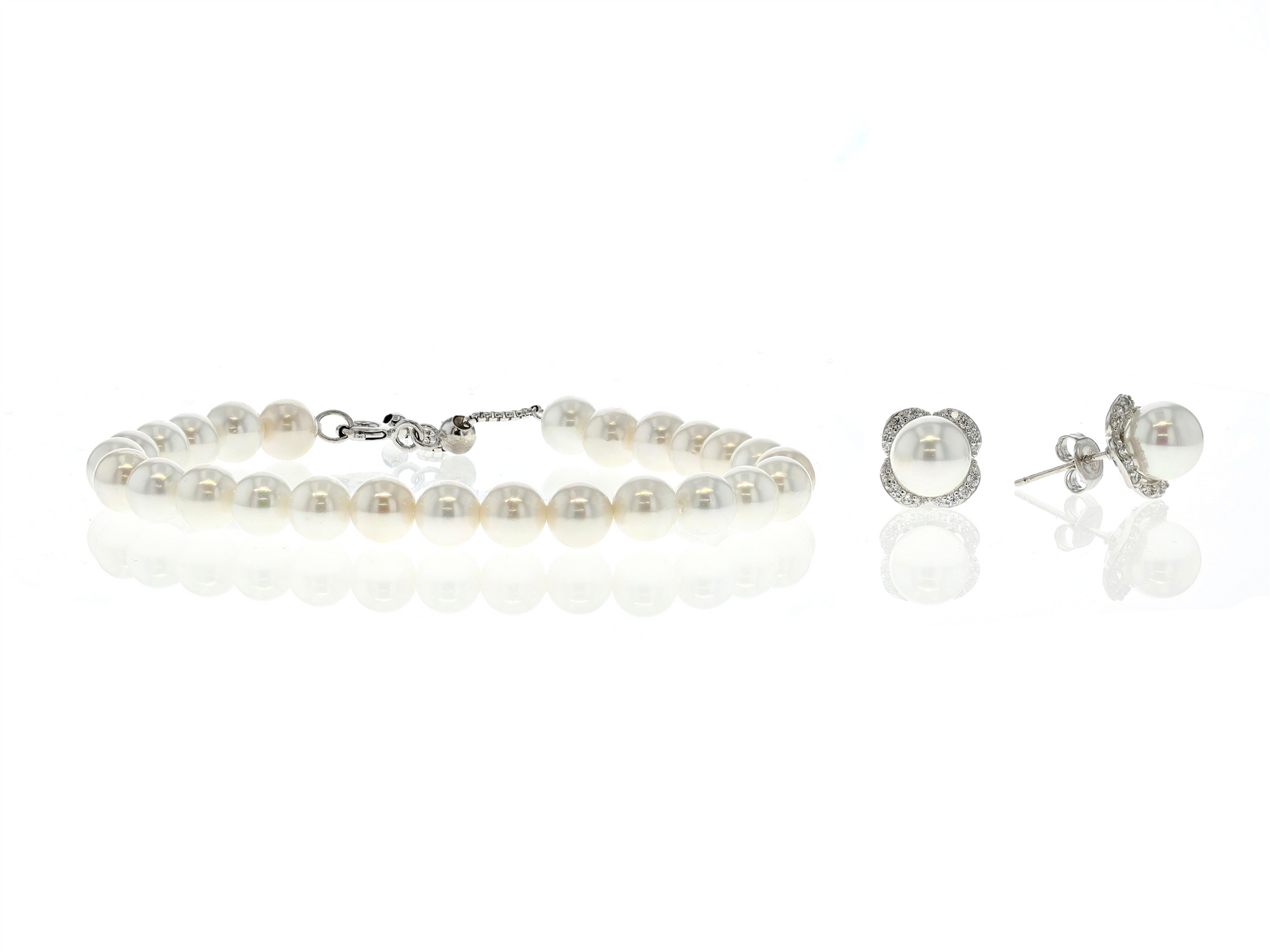 REIGN Sterling Silver Pearl Bracelet and Pearl and CZ Earring Set