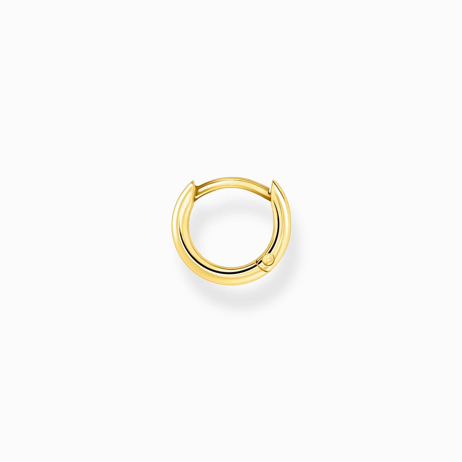 Modern simplicity meets graphic design: This hoop earring is a real statement piece. Finished with a high-quality yellow-gold plating, the hoop adds a touch of cool elegance to all kinds of looks: From day-looks to flirty party dresses. The outer diameter of the classically shaped round hoop is 12 mm. The clip closure of the single hoop earrings makes it easy to wear. Combine it with other pieces from the Charming Collection to define your individuality!