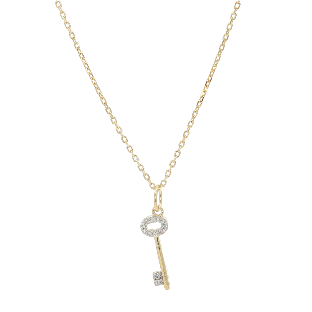 Monte Luna SS Gold Plated 0.05ctw Lab Diamond Skeleton Key Necklace 16+2"