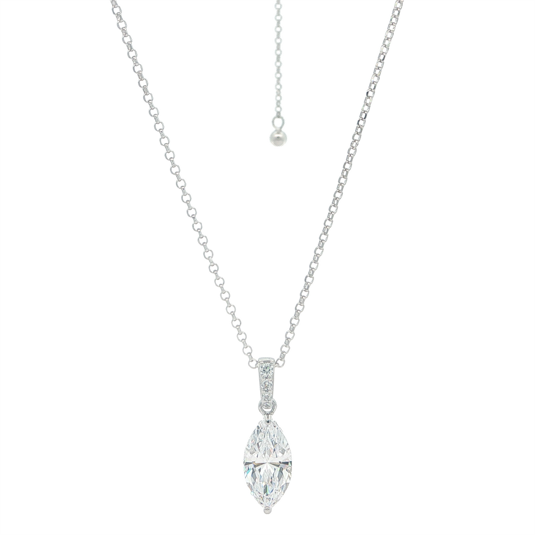 REIGN SS Rhodium Plated Marquise-Cut CZ Pendant Necklace Adjustable to 20"