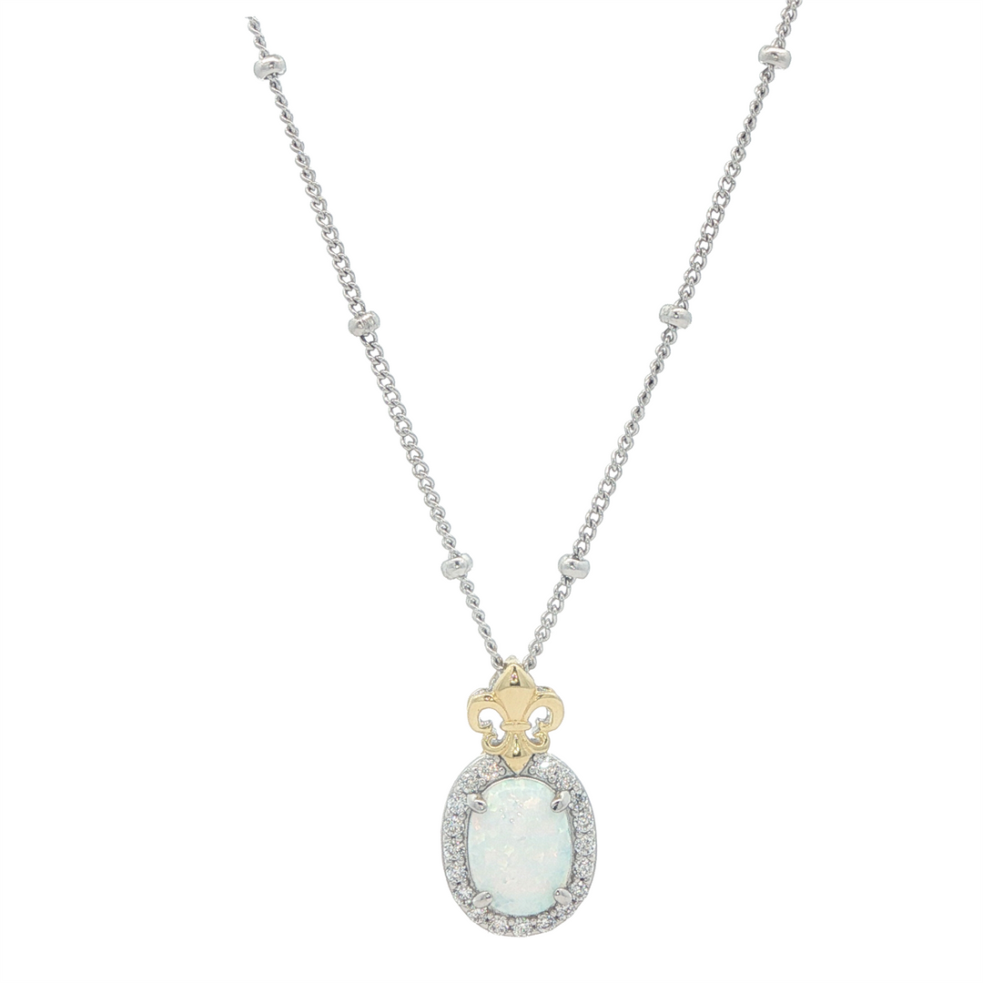 Charles Garnier "Lopal" Sterling Silver Two-Toned Opal CZ 17+2" Necklace
