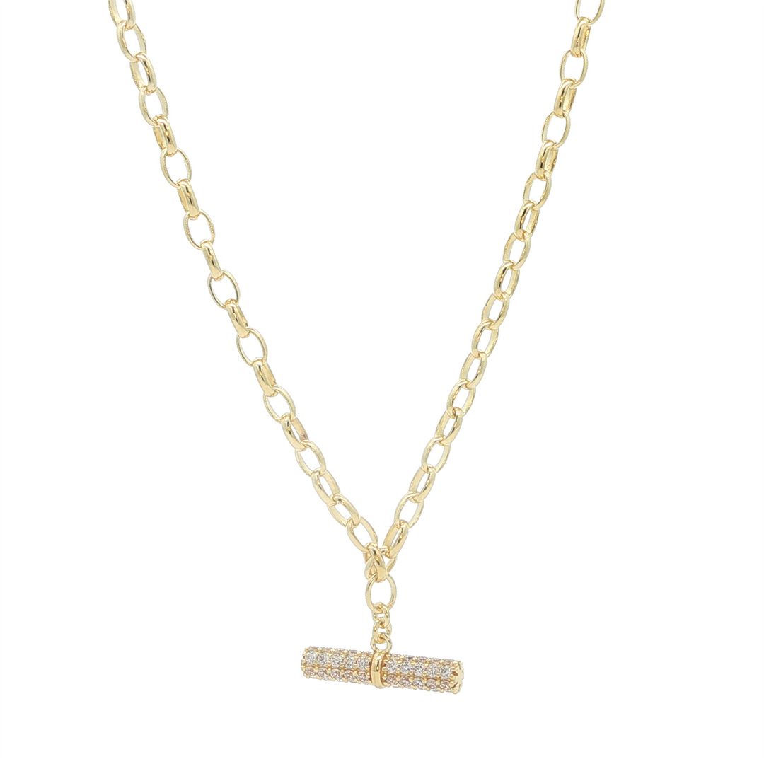 REIGN SS Gold Plated CZ Bar Charm Necklace 18+2"