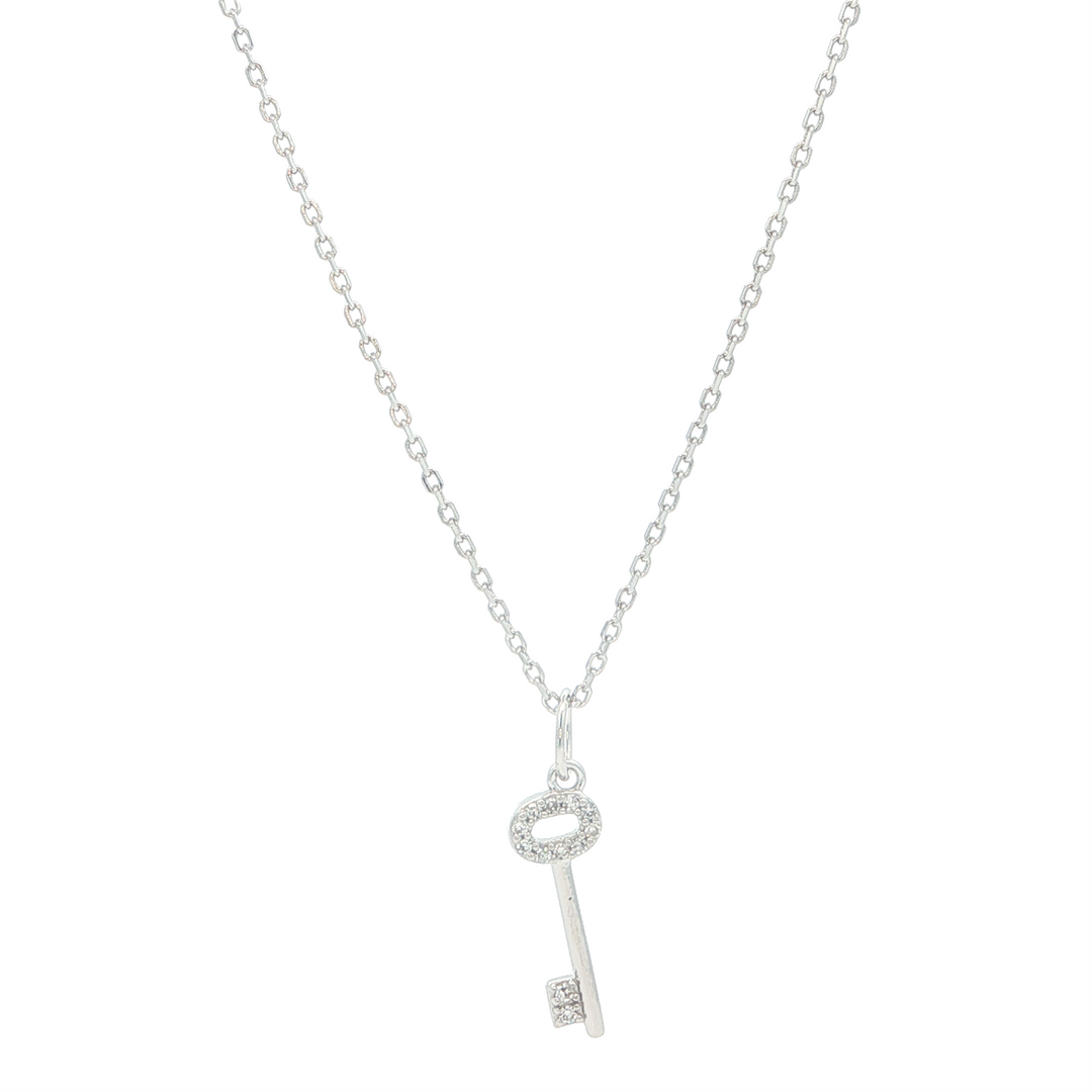 Monte Luna SS Rhodium Plated 0.05ctw Lab Diamond Skeleton Key Necklace 16+2"