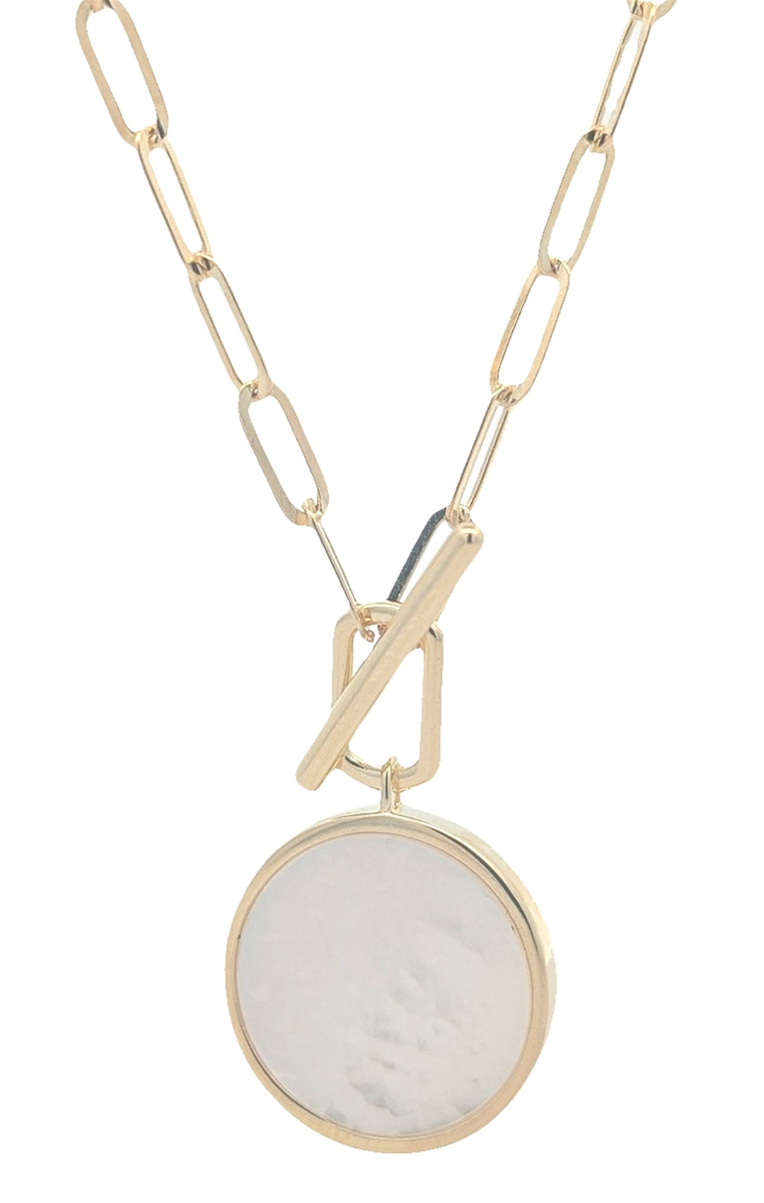 ELLE Sterling Silver Gold Plated 18" Mother Of Pearl Necklace