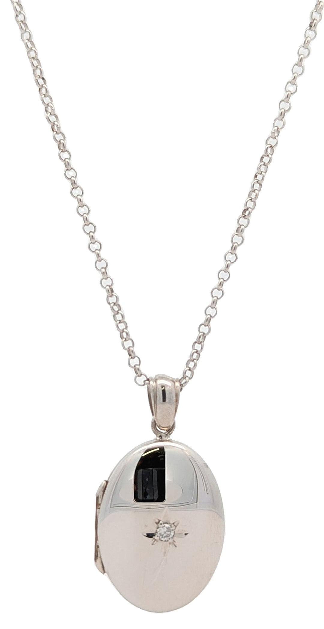 Sterling Silver Oval Locket Diamond 18" Necklace