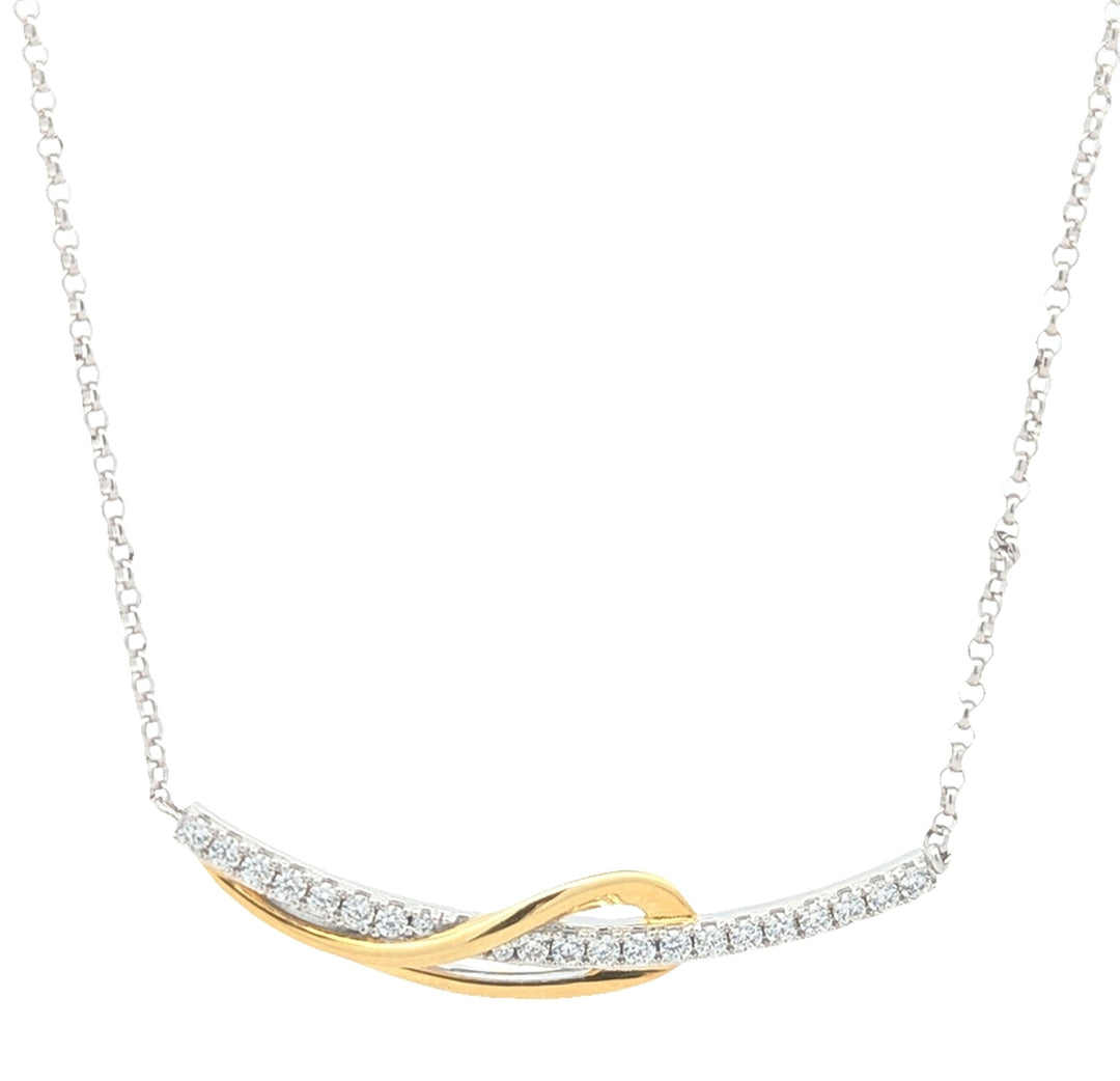Sterling Silver ELLE "Confluence" Two Tone Curved Bar Necklace
