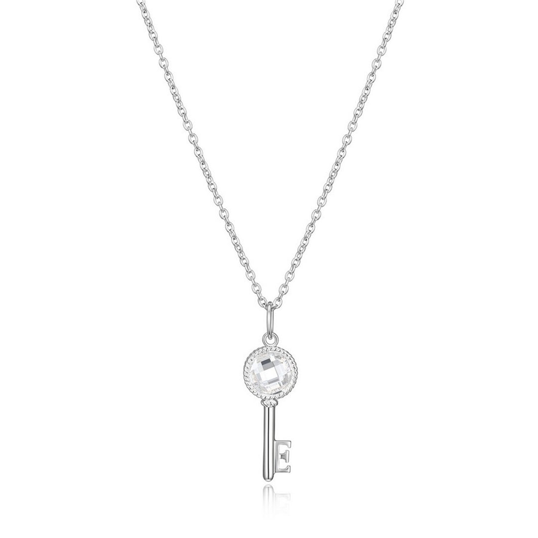 Sterling Silver ELLE "Lock & Key" CZ Necklace