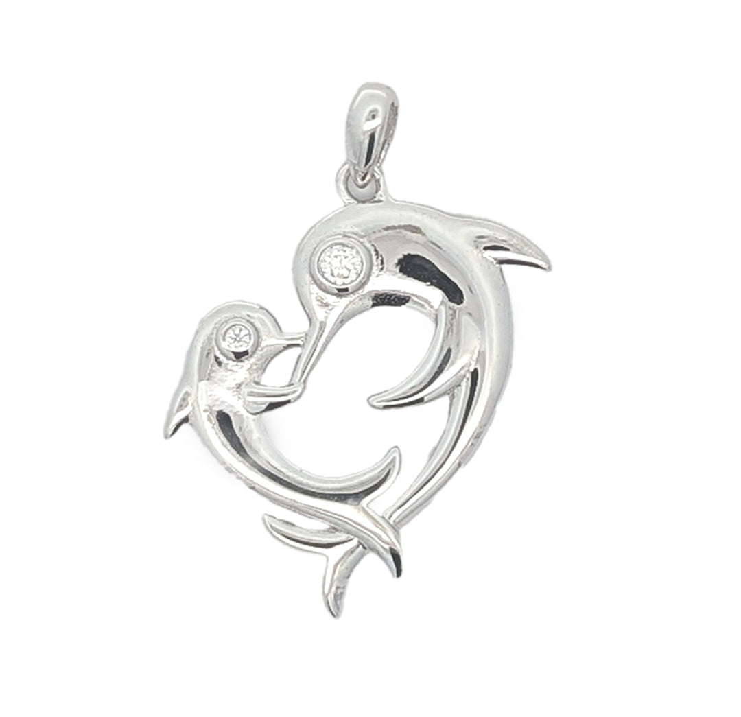 Rhodium Plated Sterling Silver Dolphin Pendant