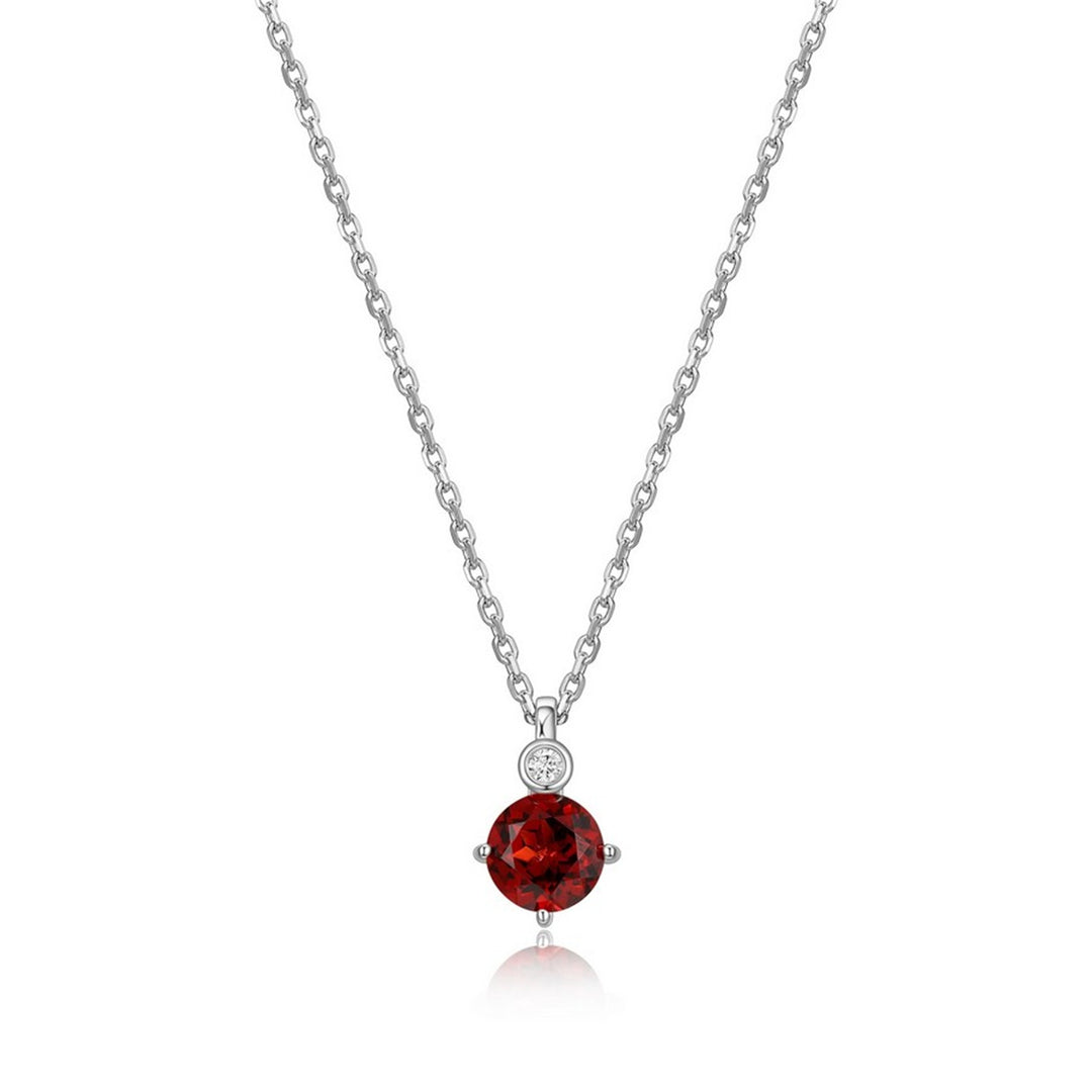 ELLE "Birthstone" Sterling Silver Genuine Garnet and Lab-Grown Diamond 17+2" Necklace