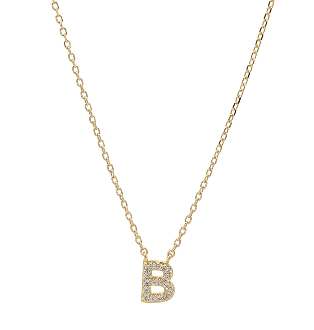 REIGN Sterling Silver Gold Plated CZ "B" 18" Necklace