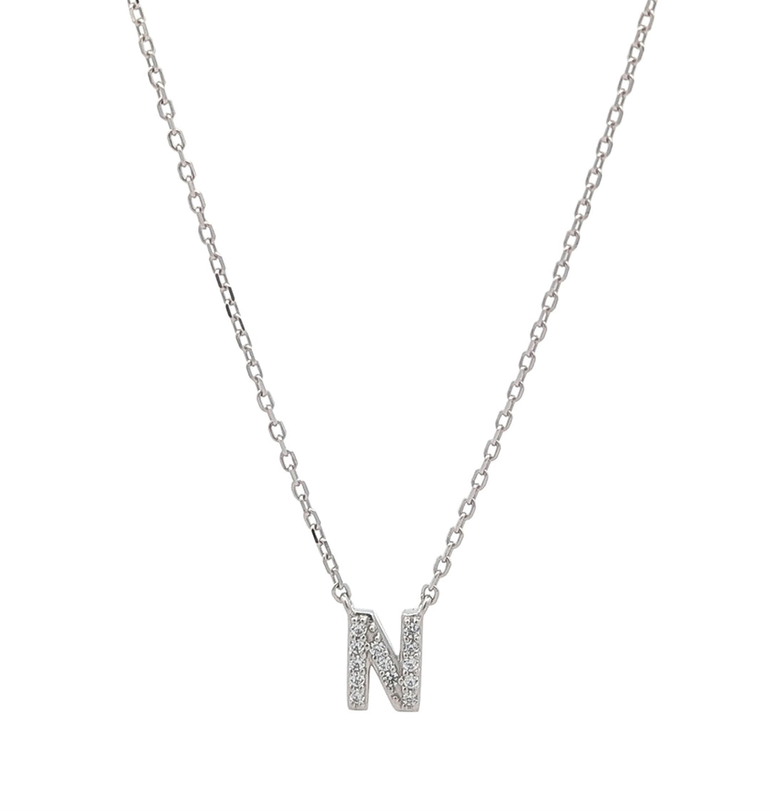 REIGN Sterling Silver CZ "N" 18" Necklace