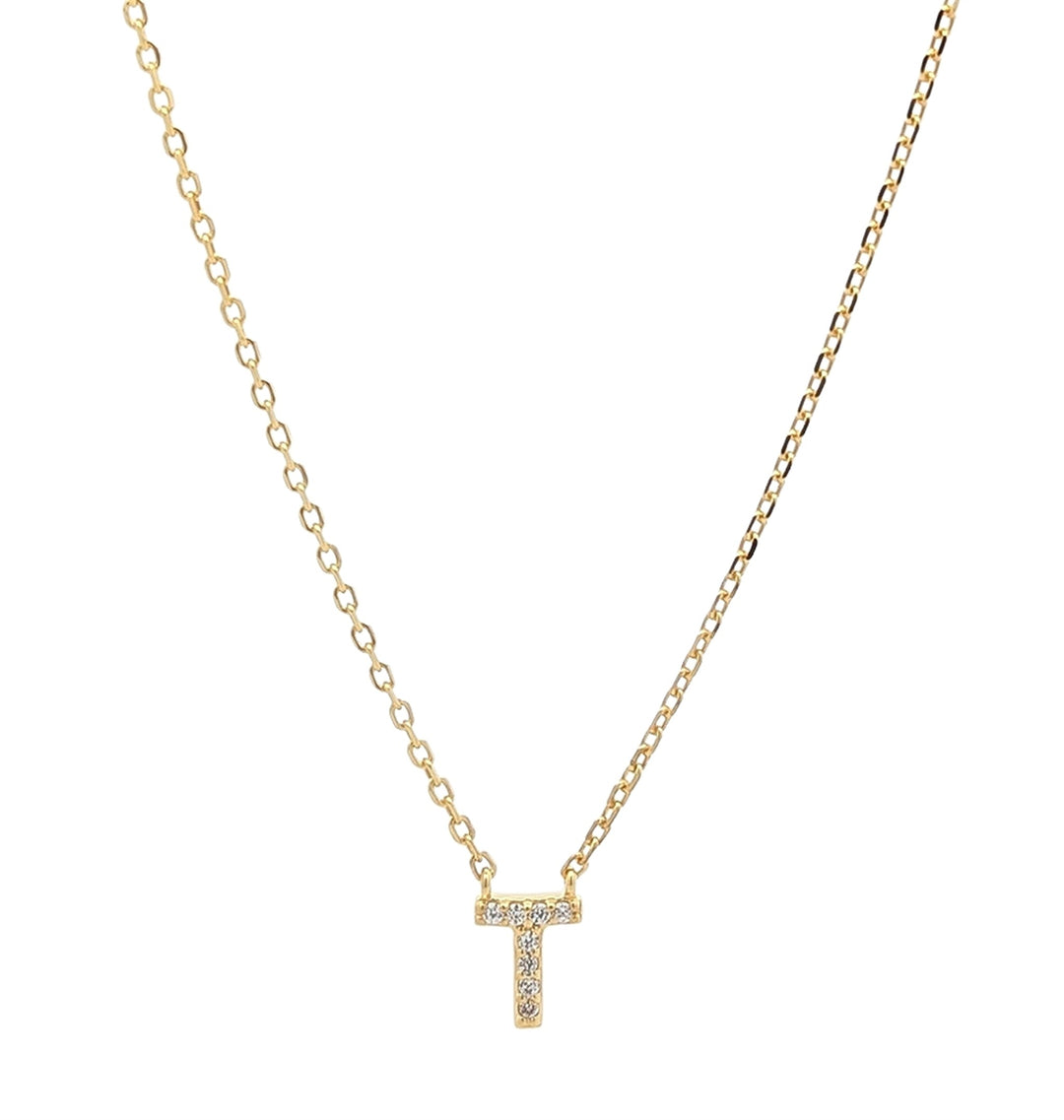 REIGN Sterling Silver Gold Plated CZ "T" 18" Necklace