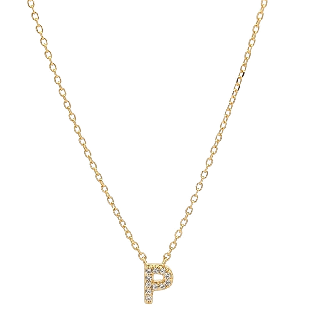 REIGN Sterling Silver Gold Plated CZ "P" 18" Necklace