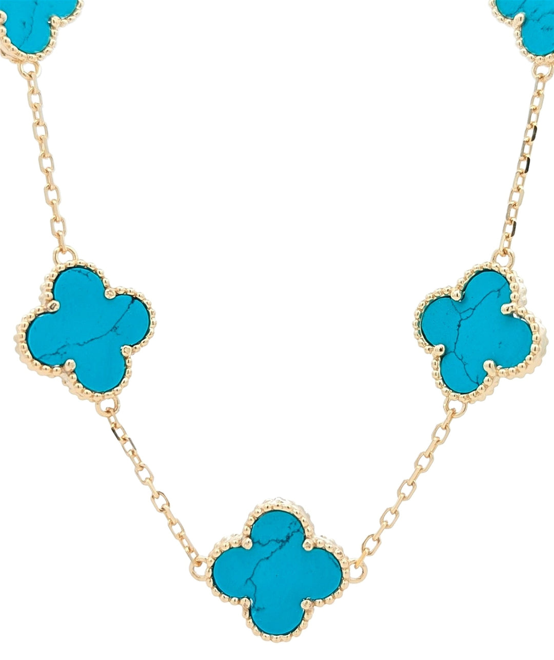 Sterling Silver Gold Plated 18" Genuine Turquoise Clover Necklace