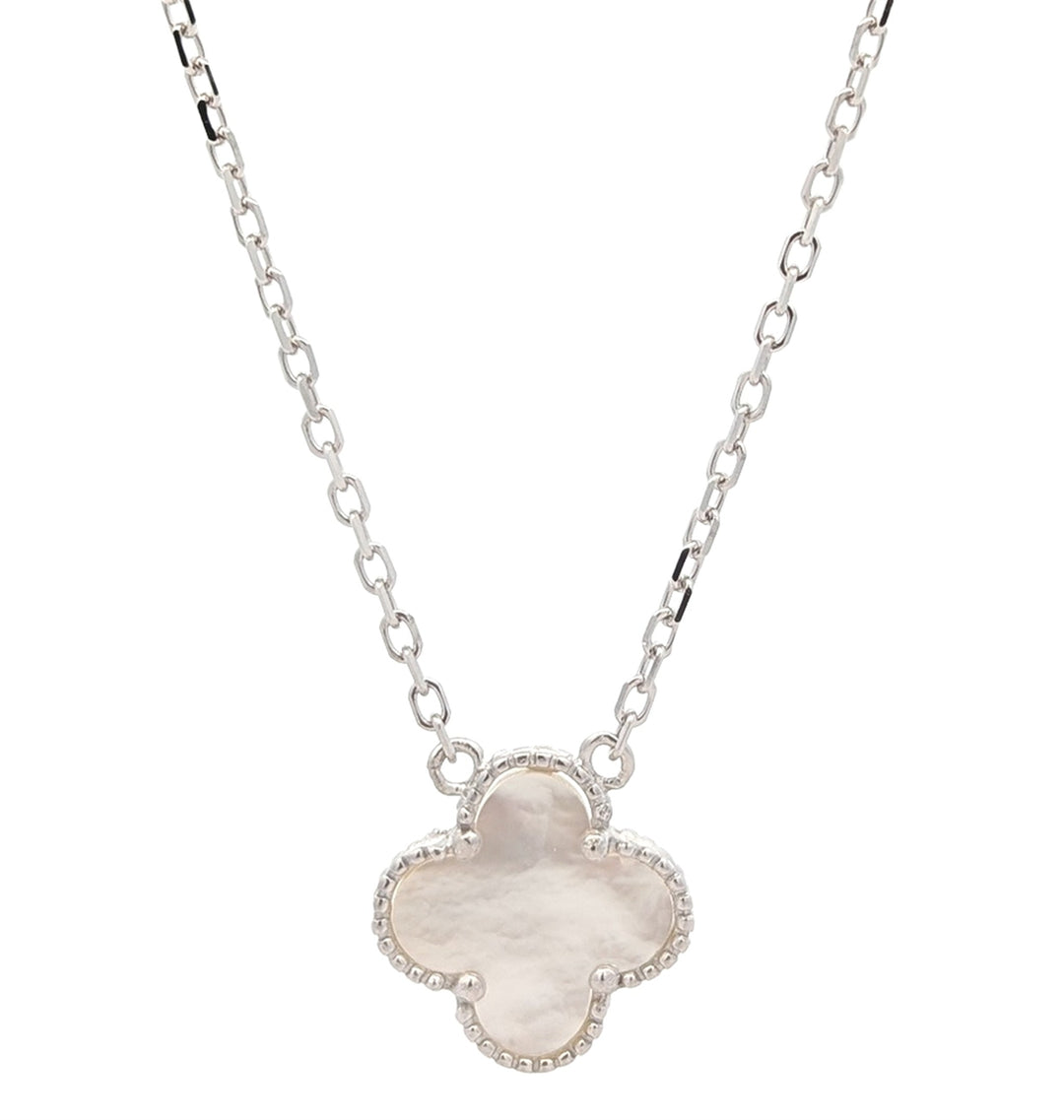Sterling Silver 18" Mother Of Pearl Clover Necklace
