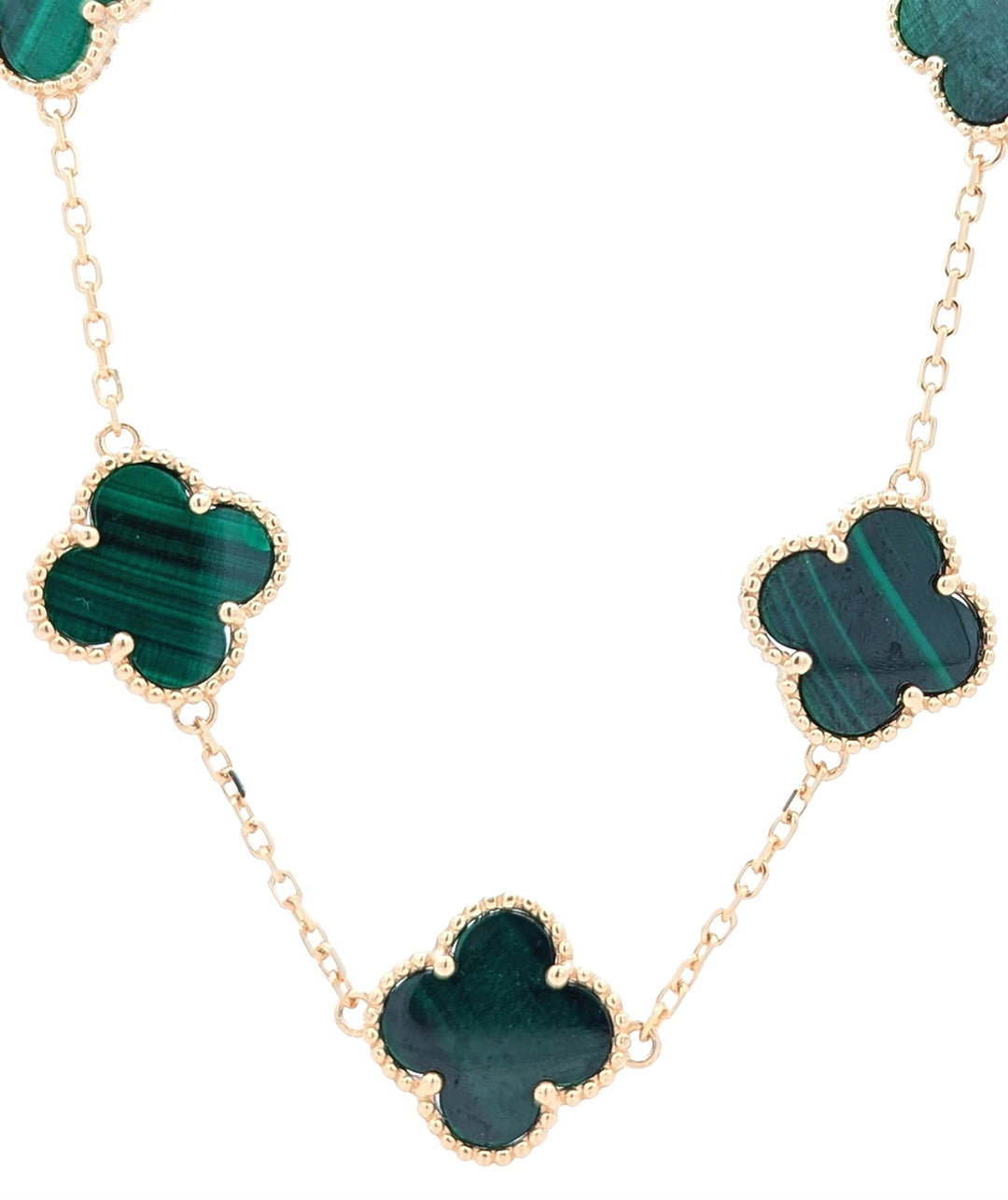 Sterling Silver Gold Plated 18" Genuine Malachite Clover Necklace