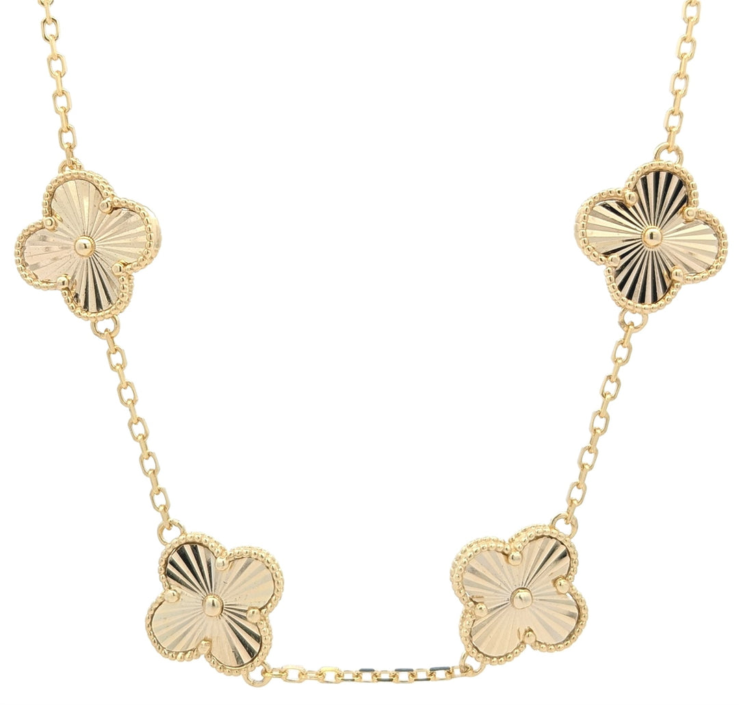 Sterling Silver Gold Plated 18" Genuine Onyx Clover Necklace