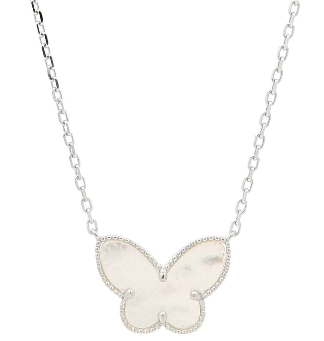Sterling Silver 18" Mother Of Pearl Butterfly Necklace
