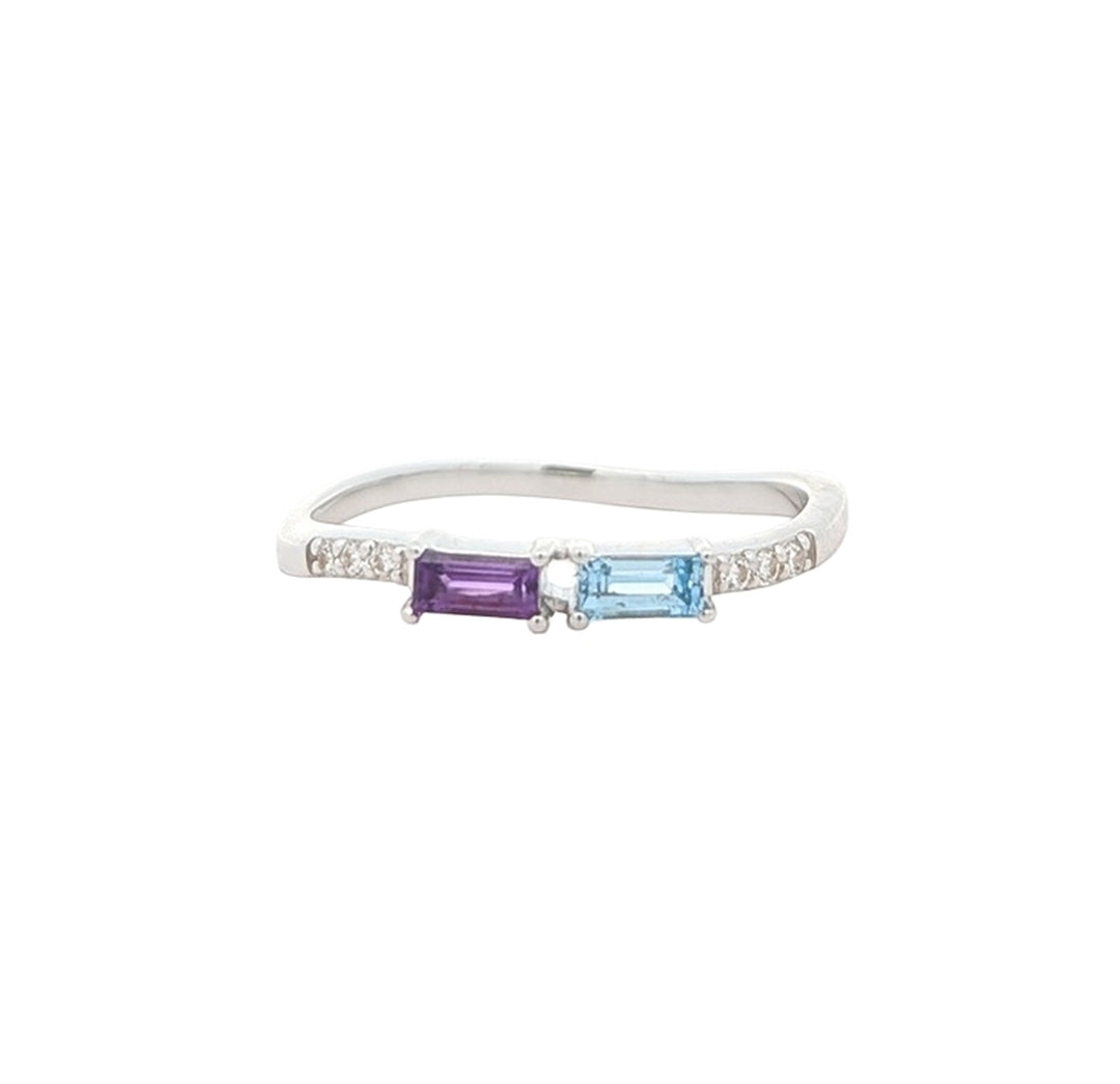 Sterling Silver Ring With Amethyst, Blue Topaz, And Cubic Zirconia
