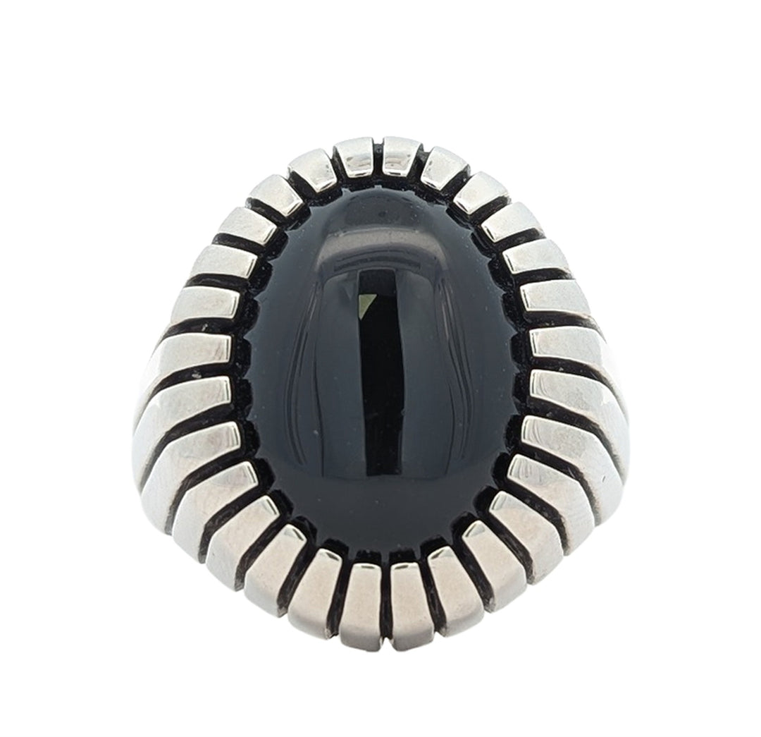 King Baby - Round Onyx Signet Ring w/ MB Cross Detail