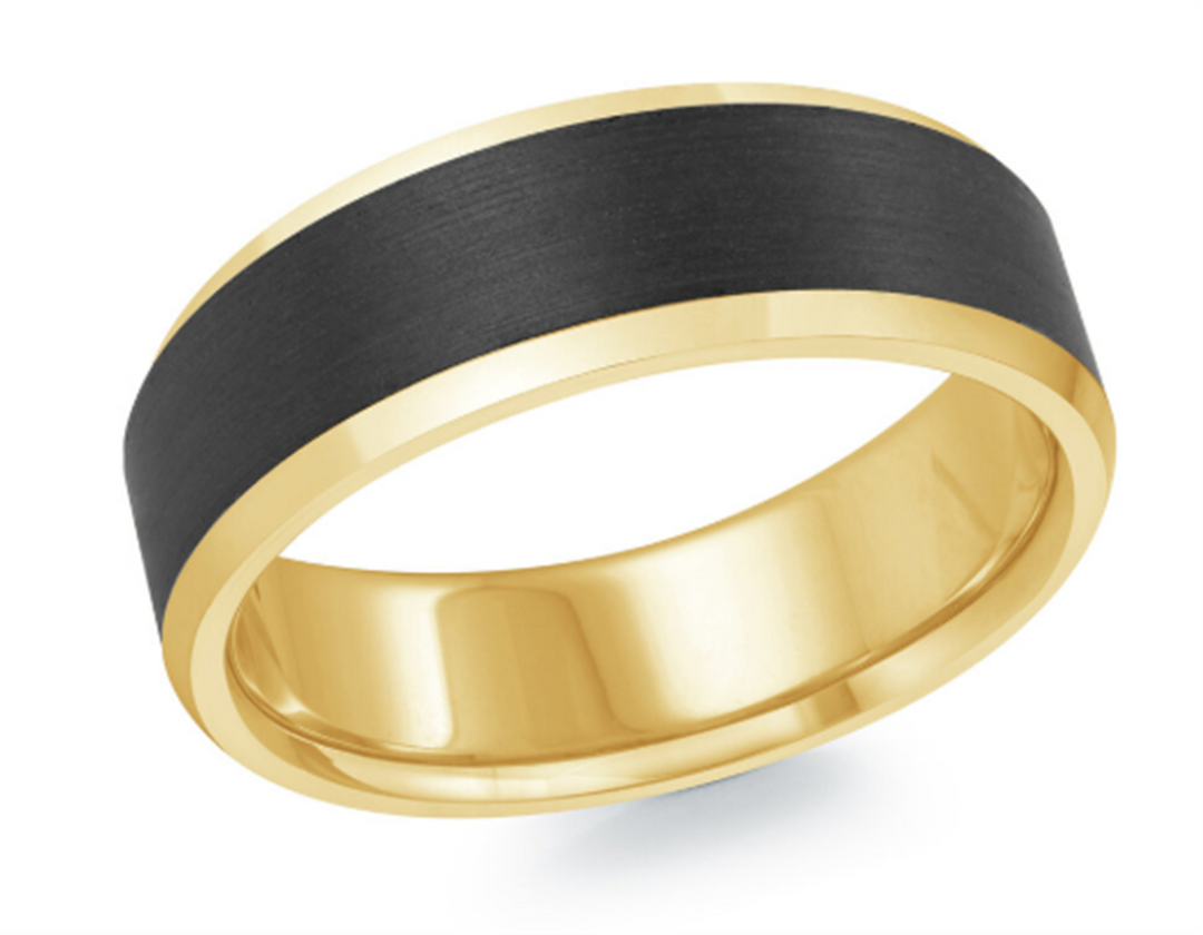 10K Yellow Gold 7mm Carbon Fiber Ring