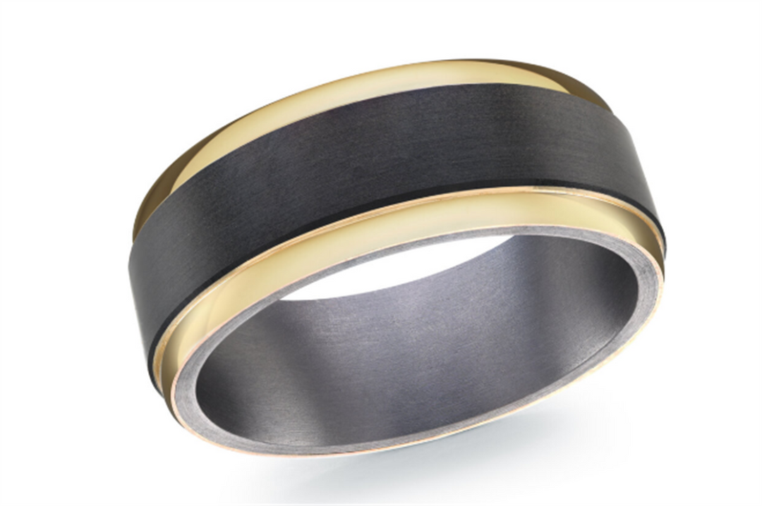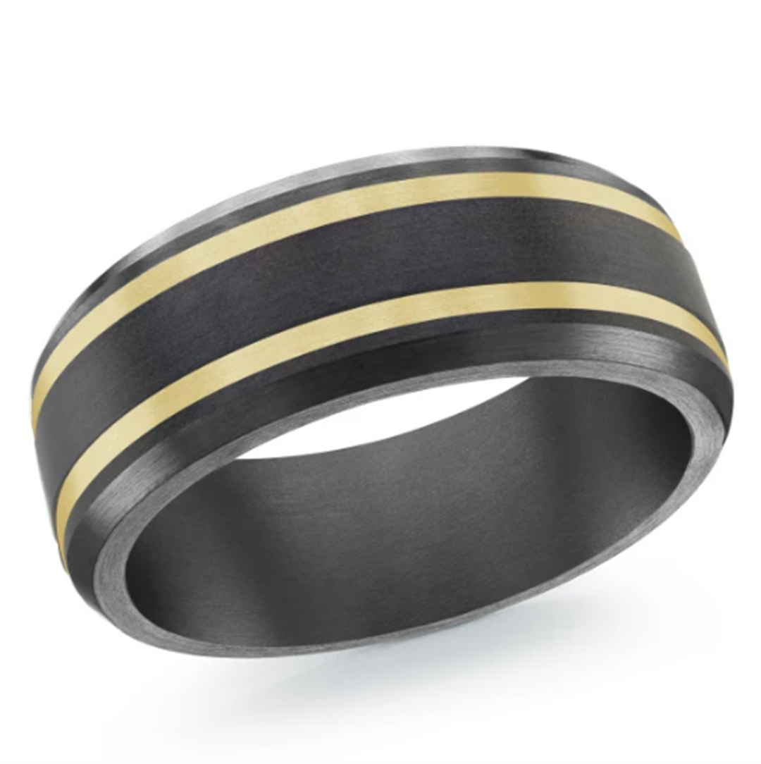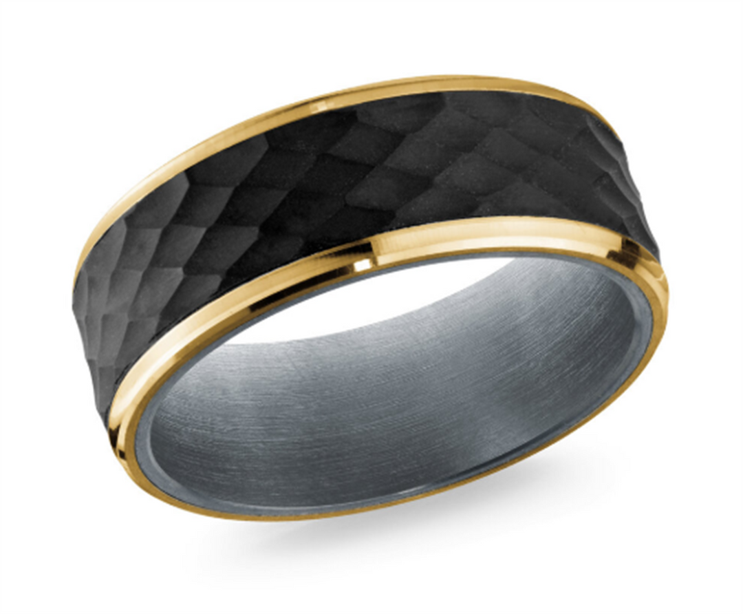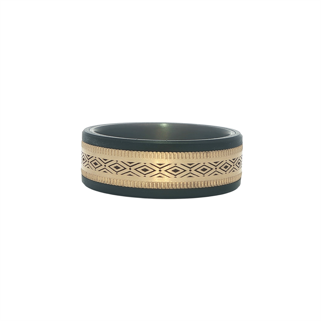 10K Yellow Gold Carbon Fiber 8mm Ring