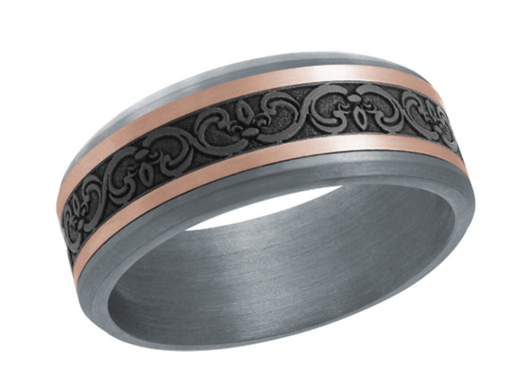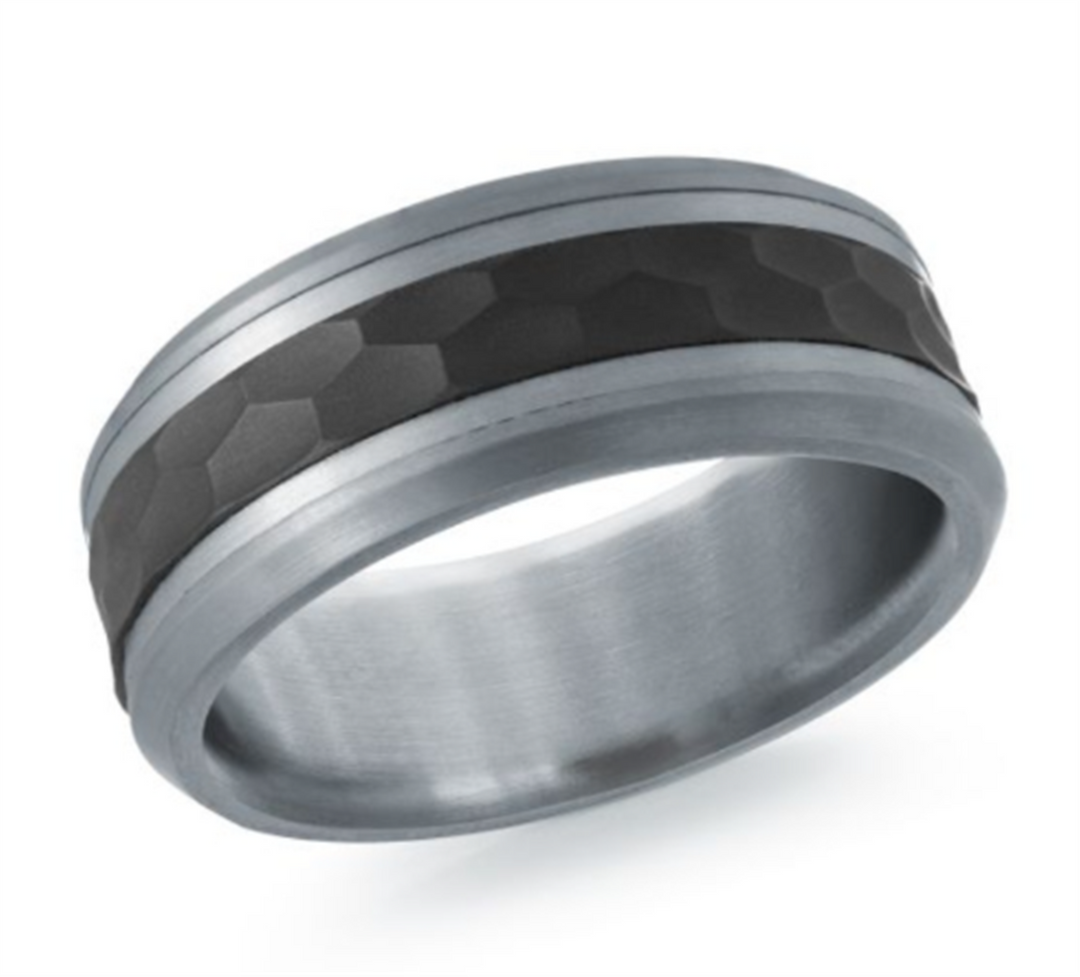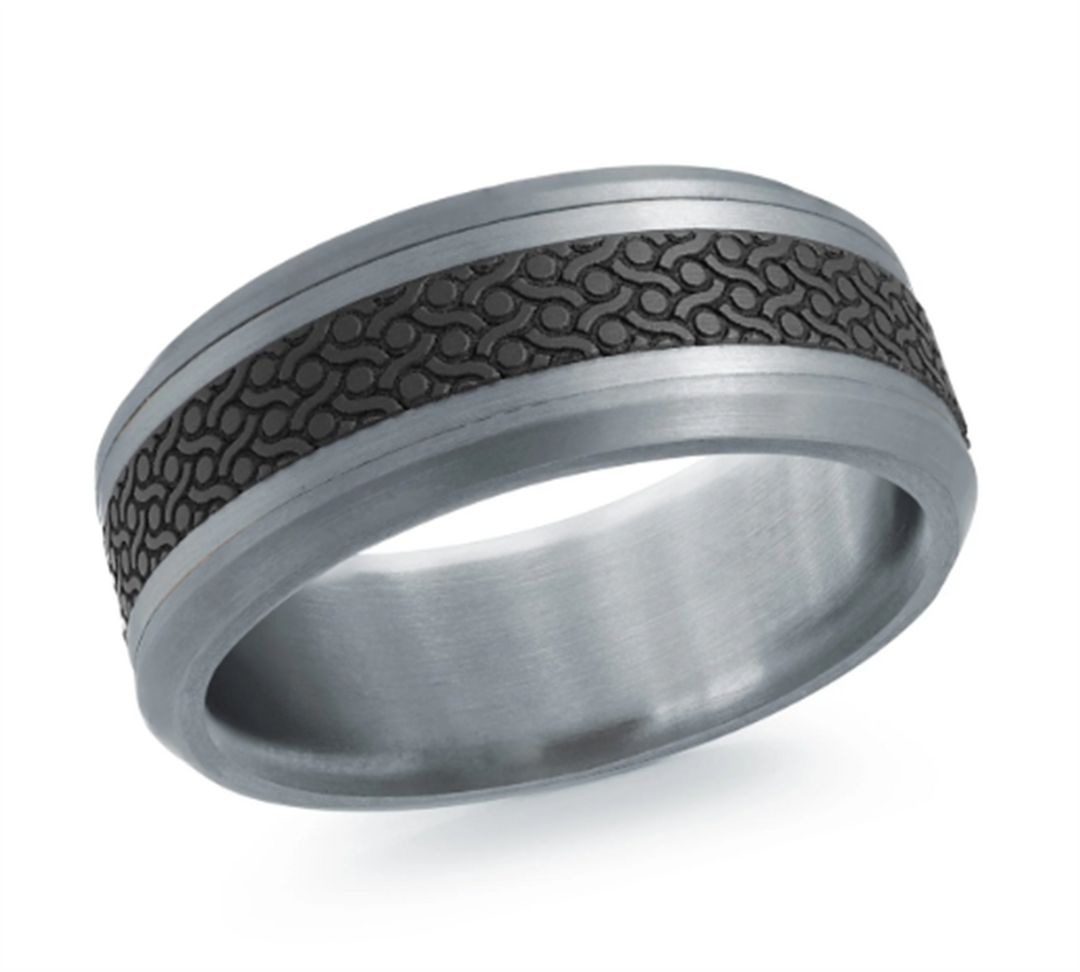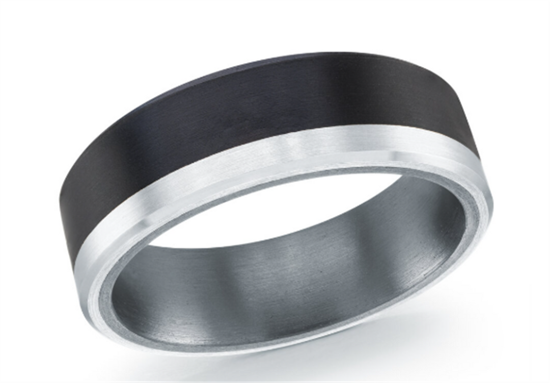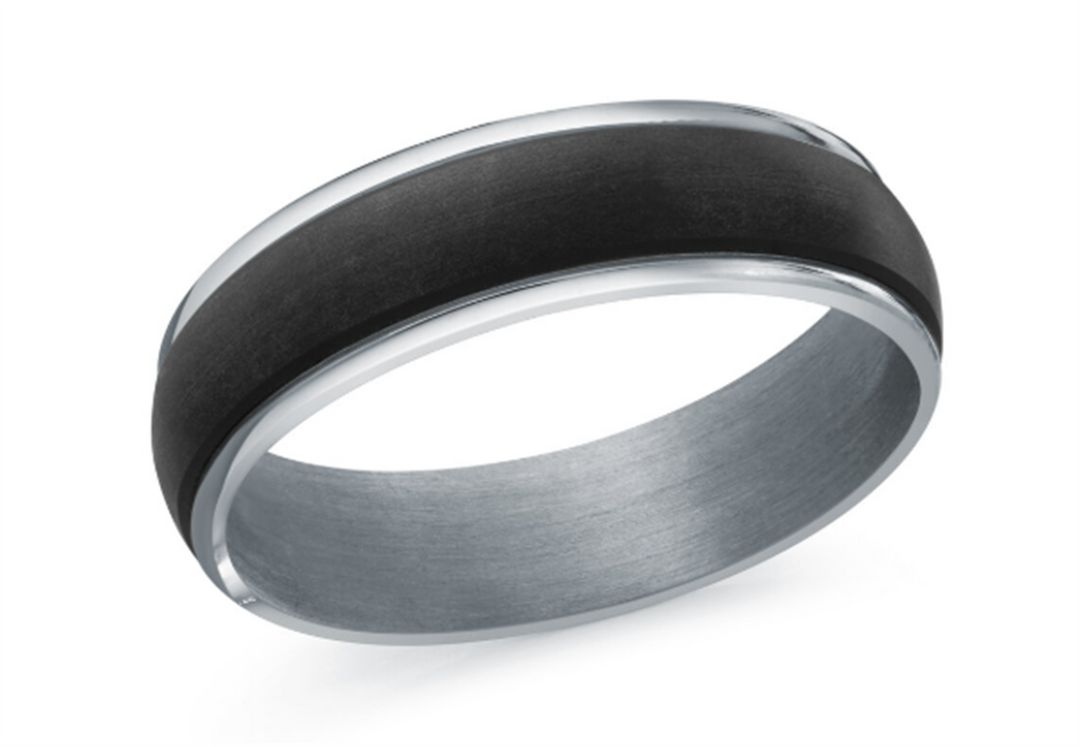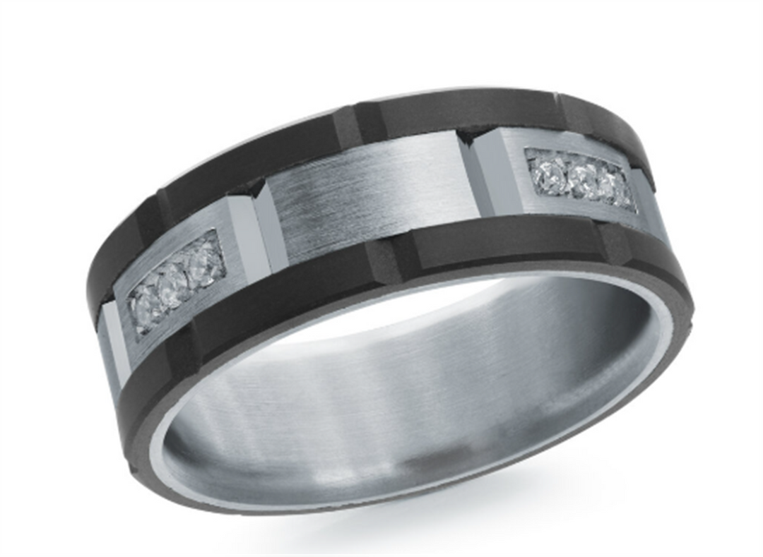10K White Gold Carbon Fiber 0.18ctw Diamond Band