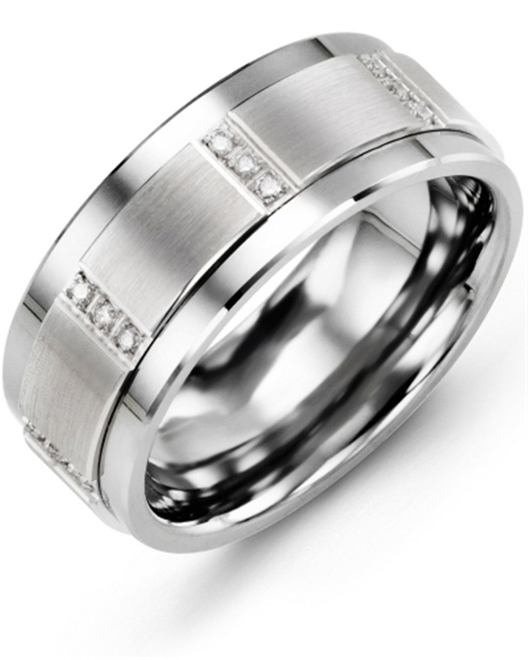 Men's Tungsten 10KT White Gold Diamond Wedding Band 0.12ctw