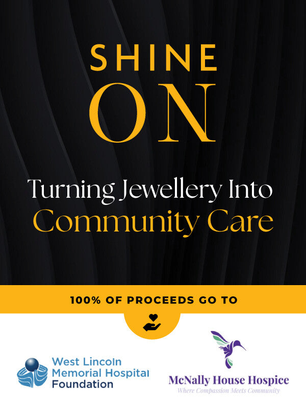 By donating your pieces you can turn your jewellery into community care to support the West Lincoln Memorial Hospital & Mcnally House Hospice. Harmony Jewellers “Shine On” initiative honours the full journey of care, from birth to end-of-life, and allows the community to shine brighter together