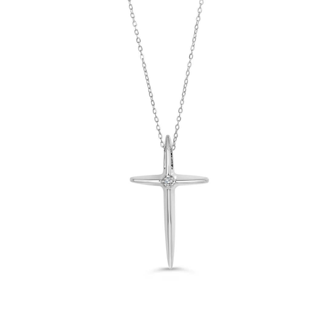 10KT White Gold 0.007ctw Diamond Cross Necklace