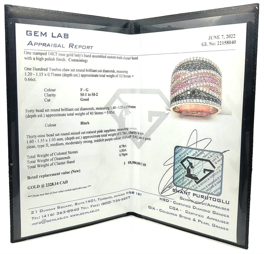 One stamped 14KT rose gold lady's hand assembled custom made cluster band with a high polish finish.