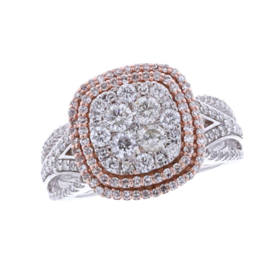 14KT White and Rose Gold 1.00ctw Diamond Estate Cluster Ring