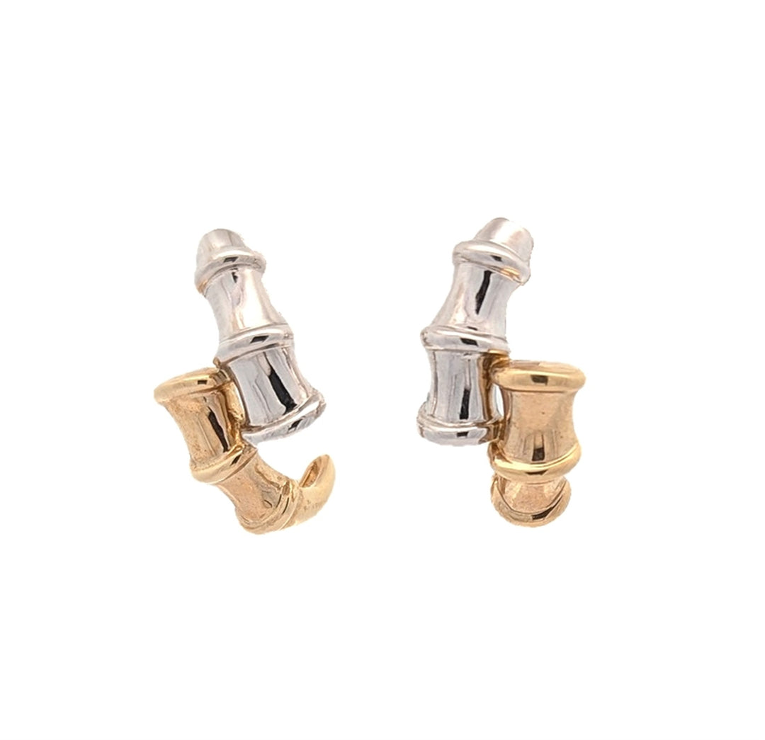 14KT Yellow and White Gold Bamboo Look Stud Earrings