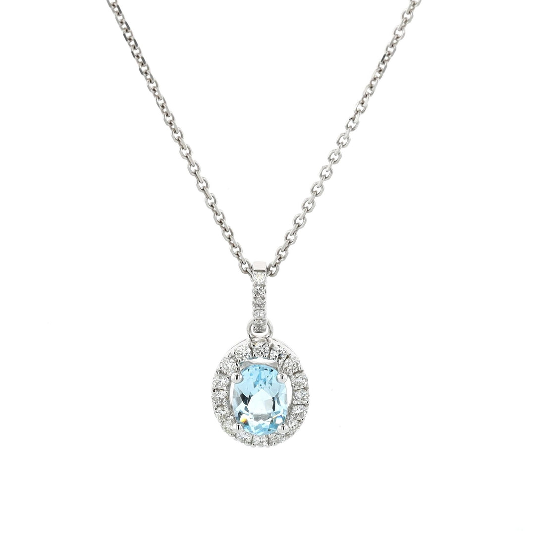 18KT White Gold Blue Topaz and 0.27ctw Diamond 20" Necklace