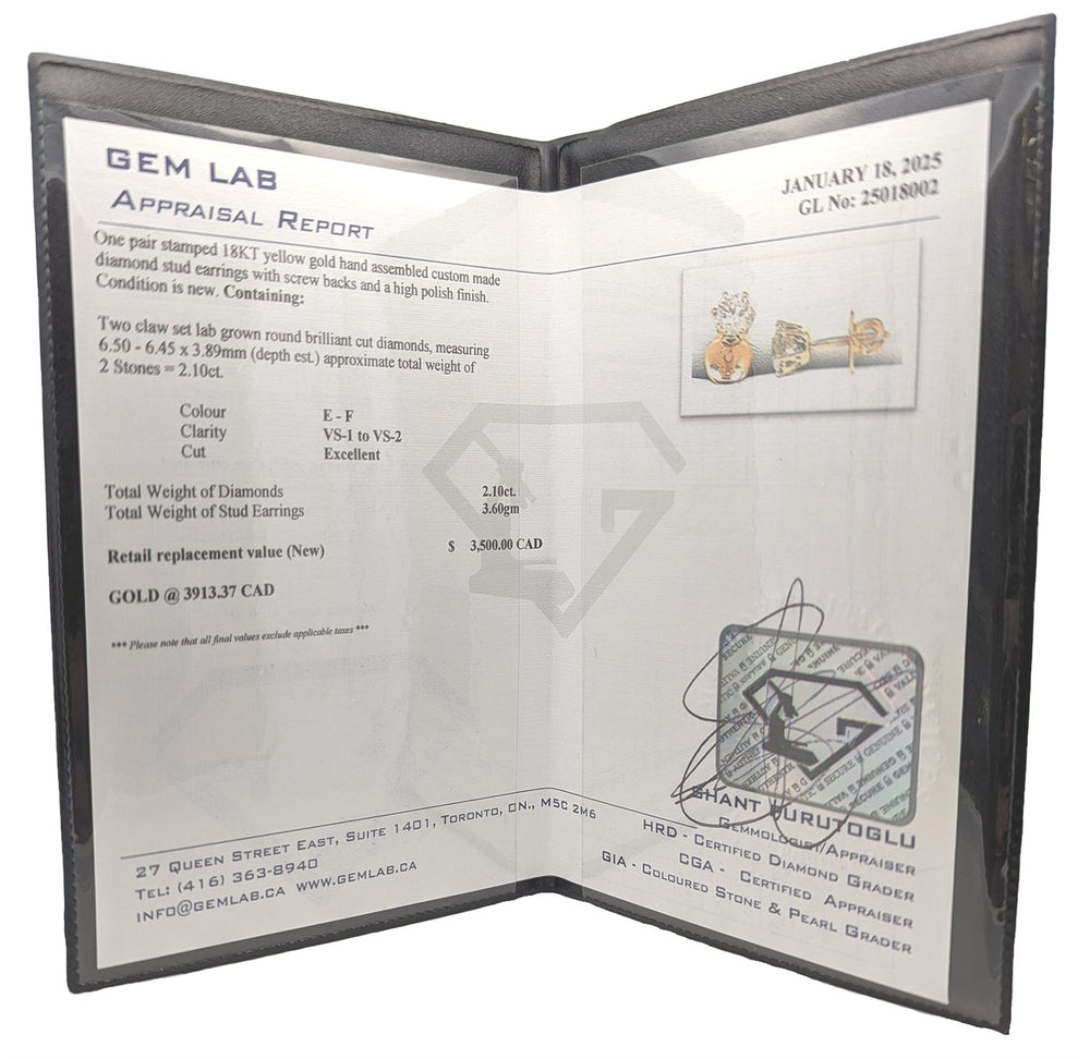 18KT Yellow Gold 2.10ctw Lab Grown Diamond Stud Earrings