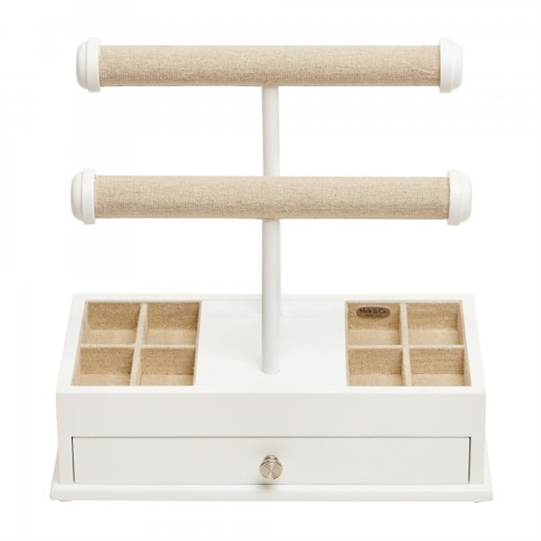 Top features eight sections plus two staggered jewelry bars