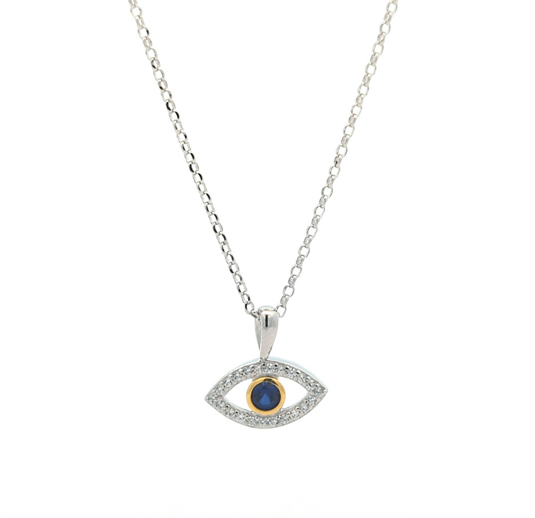 REIGN Sterling Silver and Gold Plated Created Sapphire and CZ 16+3" Necklace