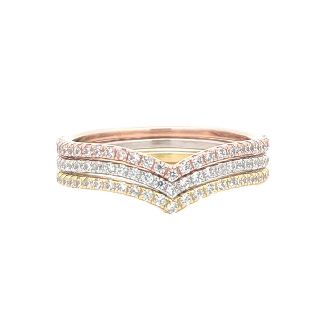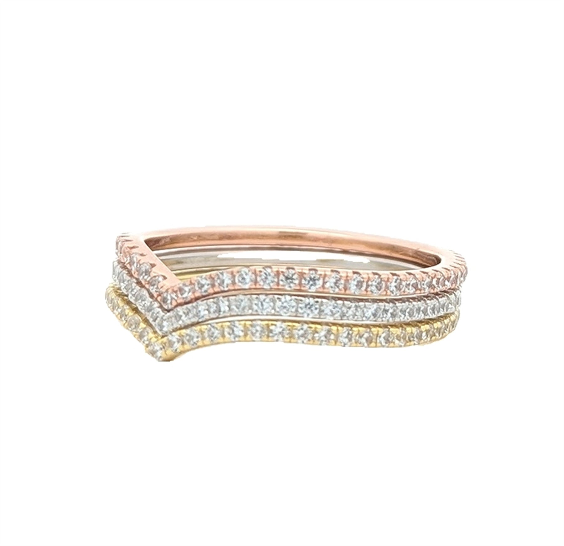 Sterling Silver CZ 3 Tone Stackable Ring Set, 1.5mm Width
