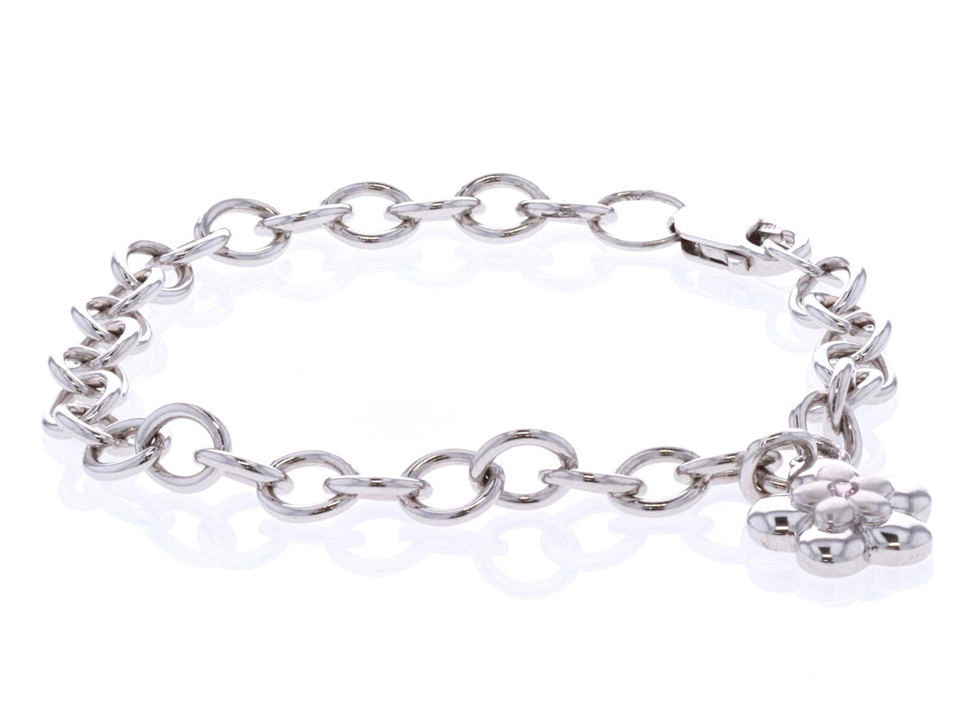 Sterling Silver Stepping Stone Children's 6.5" Bracelet with Pink Sapphire