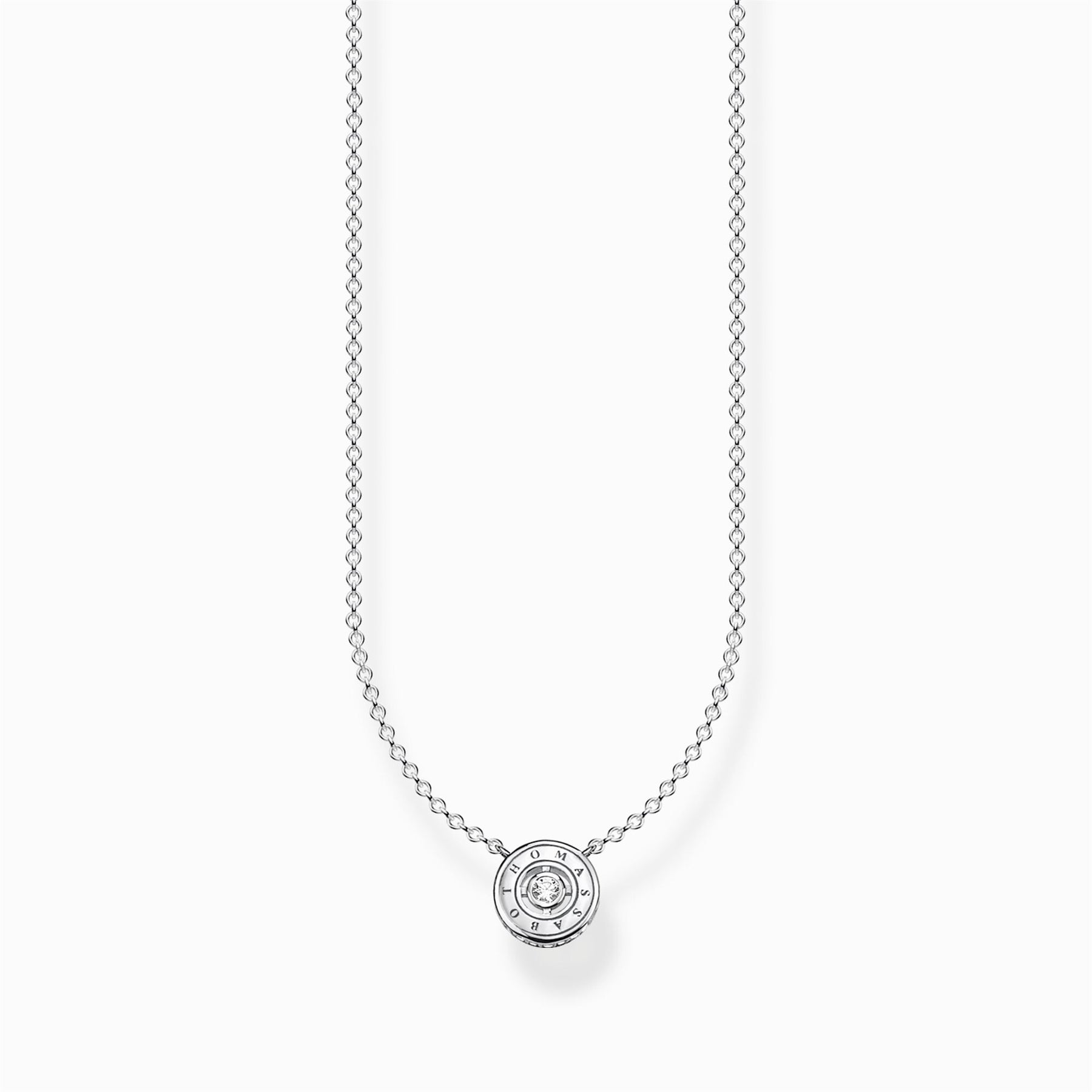 With small round pendant featuring hand-set zirconia stone in white and THOMAS SABO engraving